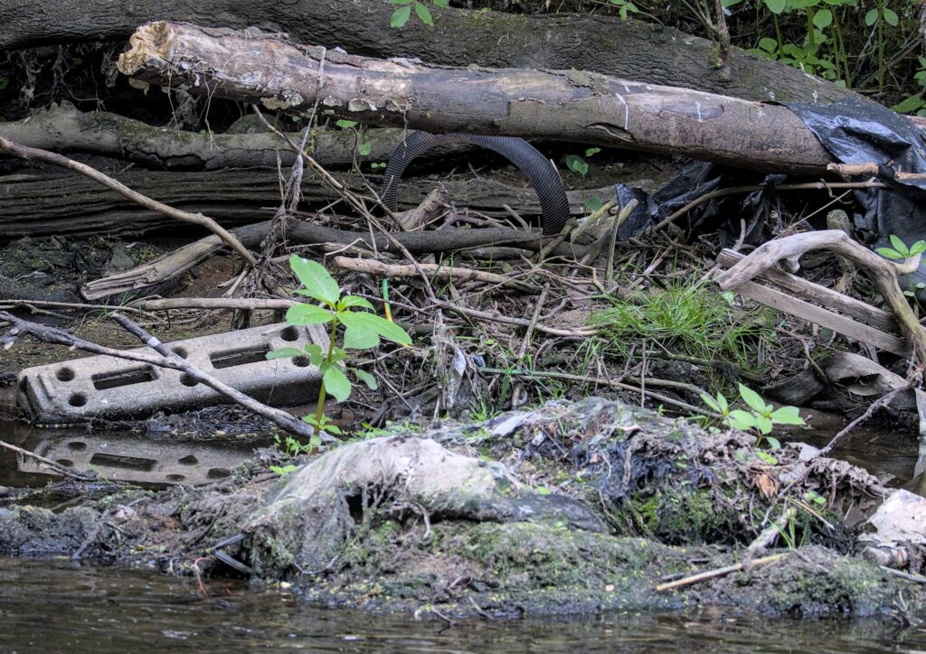 Sometimes it is only when I get home and start reviewing my photos that I see the rubbish cluttering the river. On these visits one of the first things I noticed was what was around the Grey Heron – a large gas canister and a shopping trolley. This set me up to look at what was not natural. In the past I have posted photos of Roe Deer working their way past sheets of corrugated iron. pipes and plastic. That has all been cleared away now by the Aire Rivers Trust and their volunteers, but stuff continues to appear.