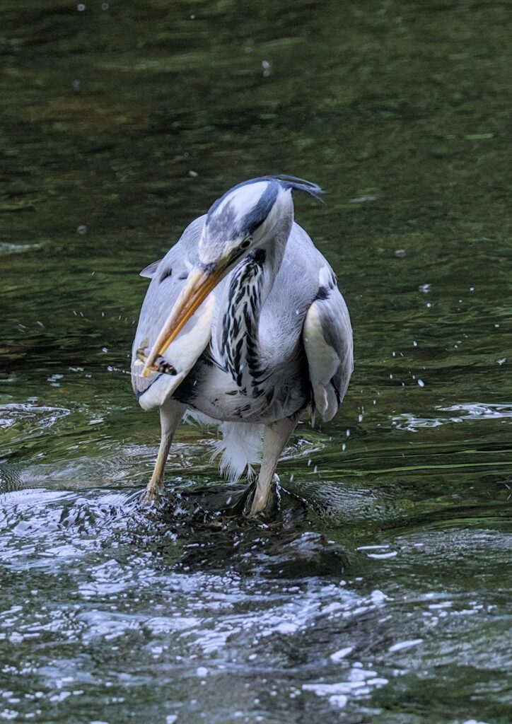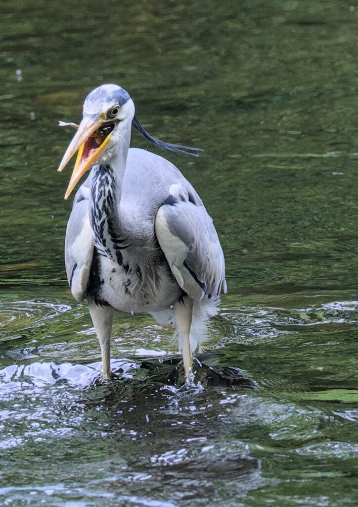 A Grey Herons throat is like the Tardis, bigger on the inside. When you look head on to a Heron its head and neck look really thin, but then when it opens its beak to toss a fish down it is a massive gape.