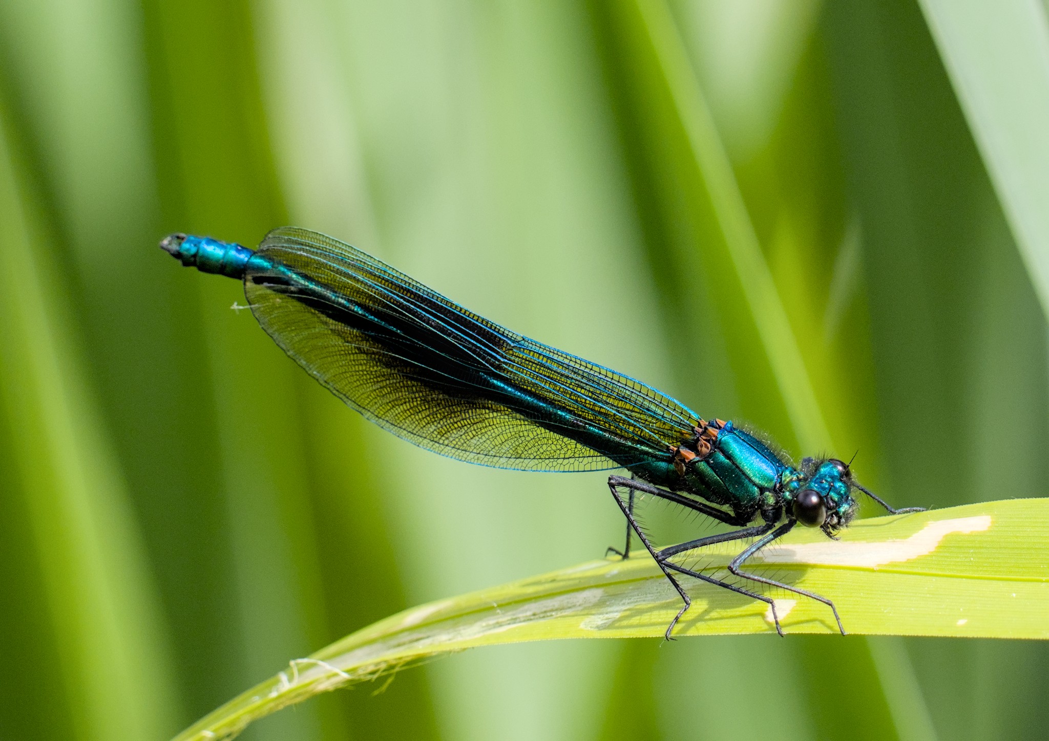 This group of photos are of the things with wings or wriggly tails. The pond at Denso Marston Nature Reserve now has lots of Azure Damselflies, some of them mating and ovipositing. Ditto with the Large Red Damselflies. There were quite a few Banded Demoiselles around the pond but also along the river.