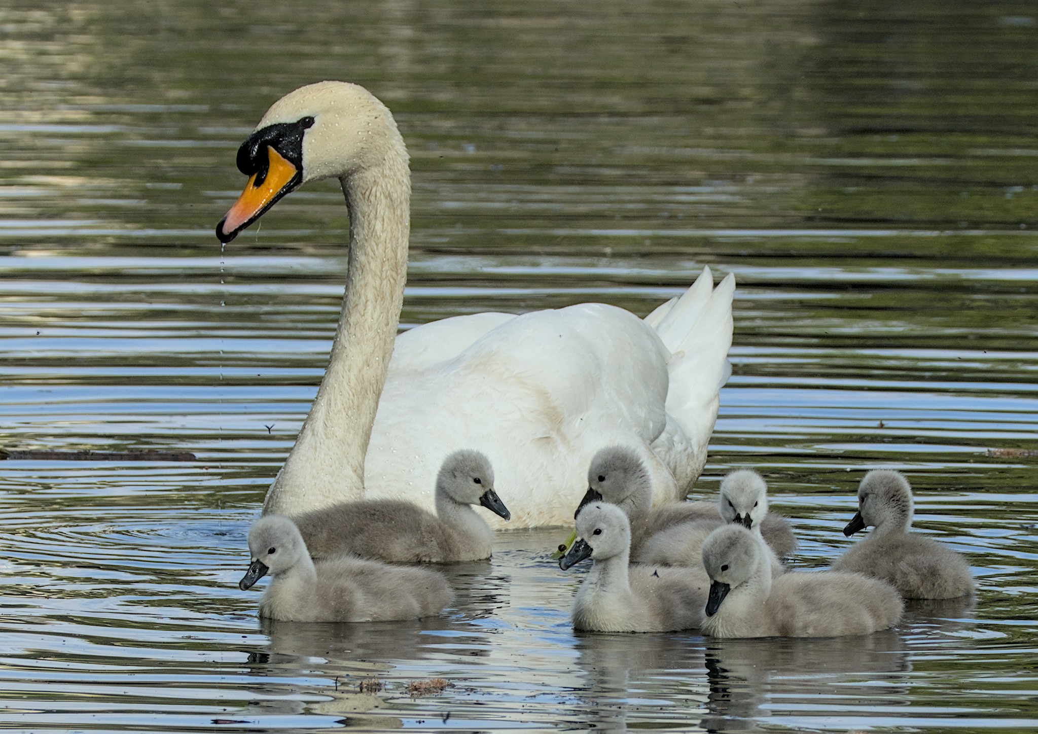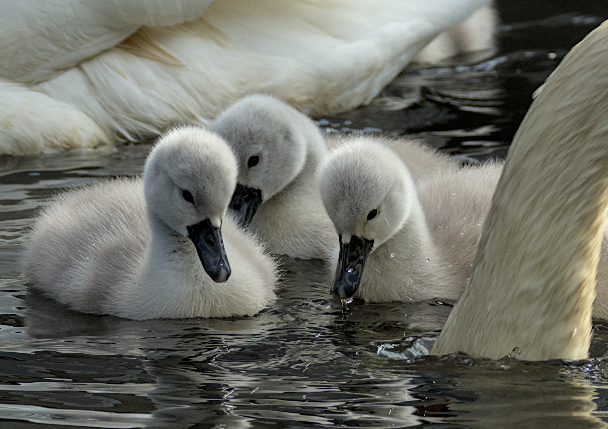 The Swans and Cygnets were on the canal near the Otley Road bridge. The parents were dipping their heads down and pulling vegetation up to the surface for the Cygnets to eat.