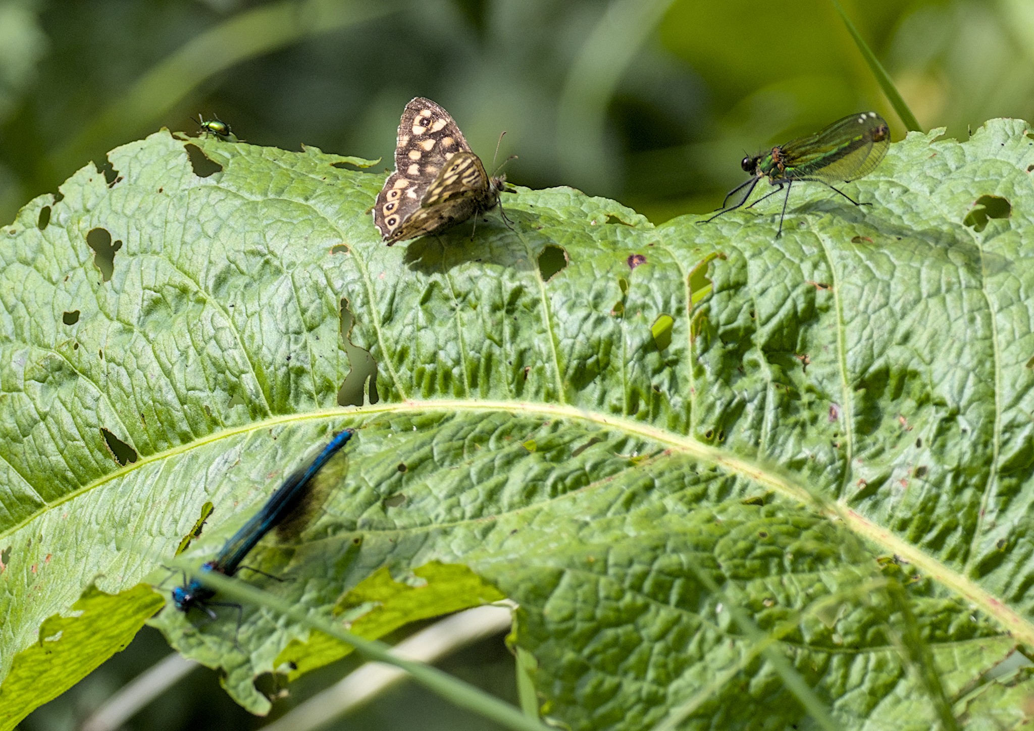 Azure & Large Red Damselflies, Banded Demoiselle, Sawfly, Peacock, Speckled Wood, Holly Blue, and Tadpole