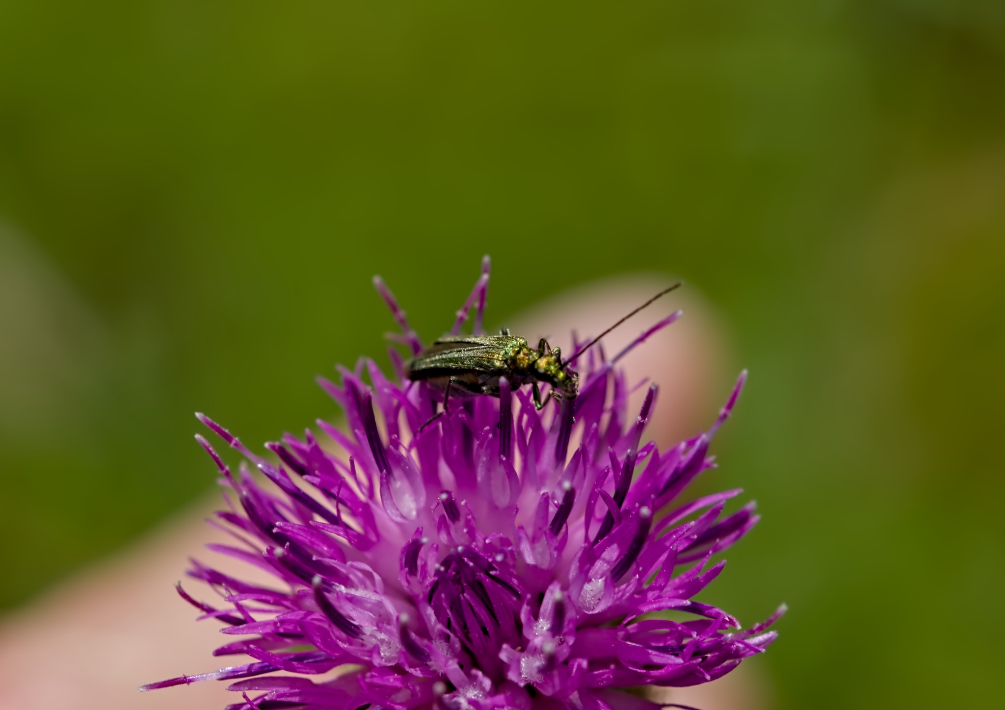 At Potter’s Pits I was a little surprised to come away without any scratches or stings. The pathway in is narrow, and the nettles and thistles are quite high and some branches from the brambles were across the path ready trip you or spike you if you didn’t step over them. The place was busy with bees and as I walked I could see grasshoppers jumping out of the way.