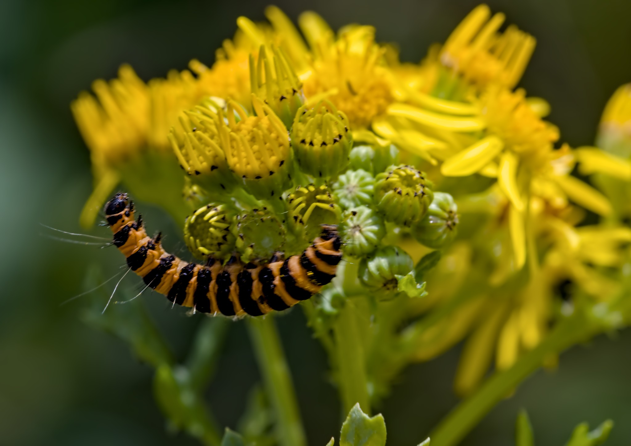 I kept looking at the Ragwort for caterpillars and eventually spotted a Cinnabar Moth caterpillar.