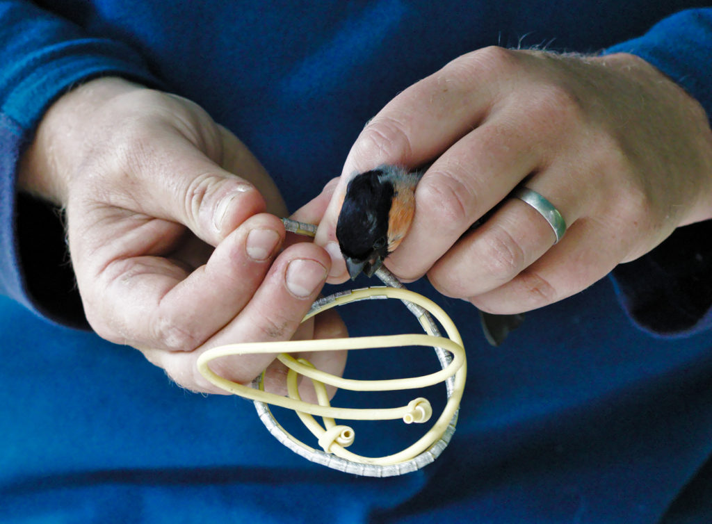 A licensed bird ringer had set up a couple of nets and was showing people bird ringing. This Male Bullfinch looks none the worse for just having been in a cloth bag and then had a ring put on its leg.