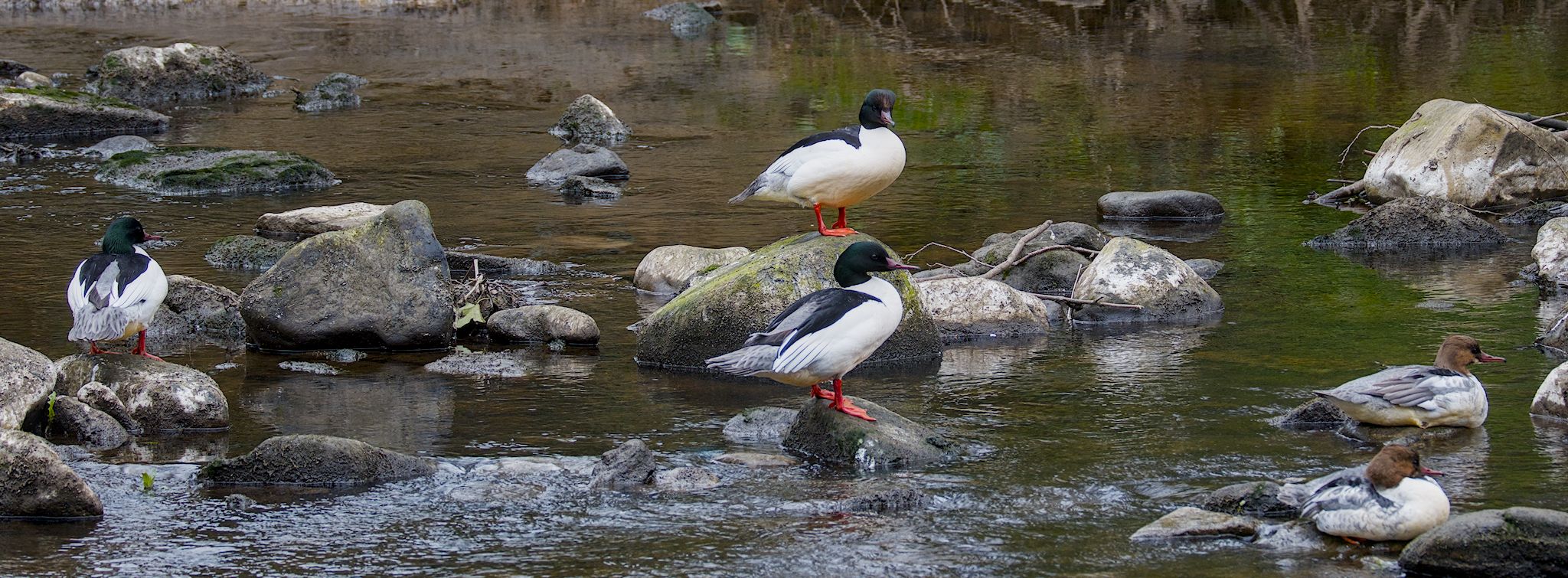 The header image is of several male and female Goosander on their favoured rocks opposite the entrance to the reserve.
