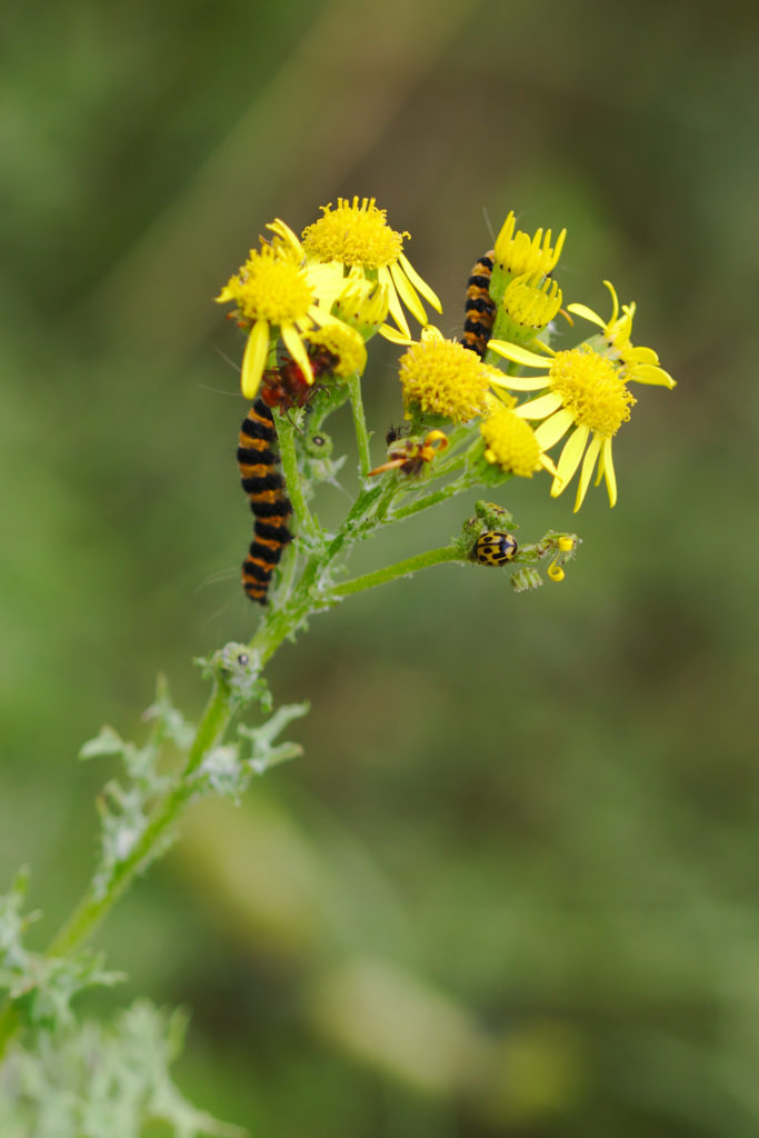 The photos below were taken in Potter Pits and the field on the other side of Bradford Beck from Potter Pits. The field is currently for sale as a development opportunity. And the last few, of Cinnabar Moth caterpillars, were taken on the land that used to be the cinema, then bingo hall, on Briggate.