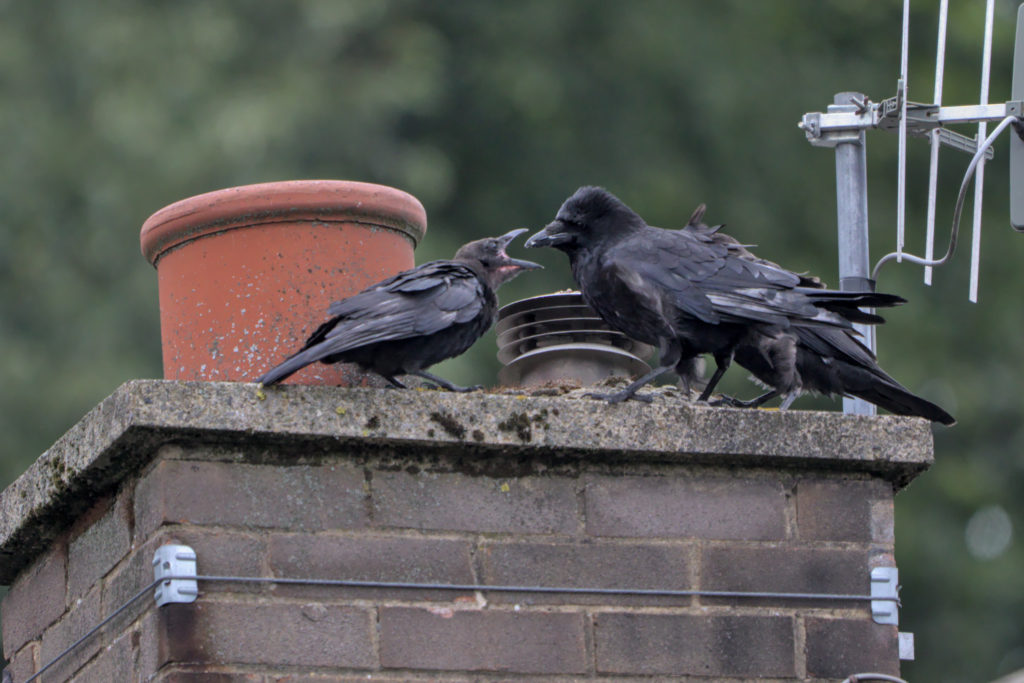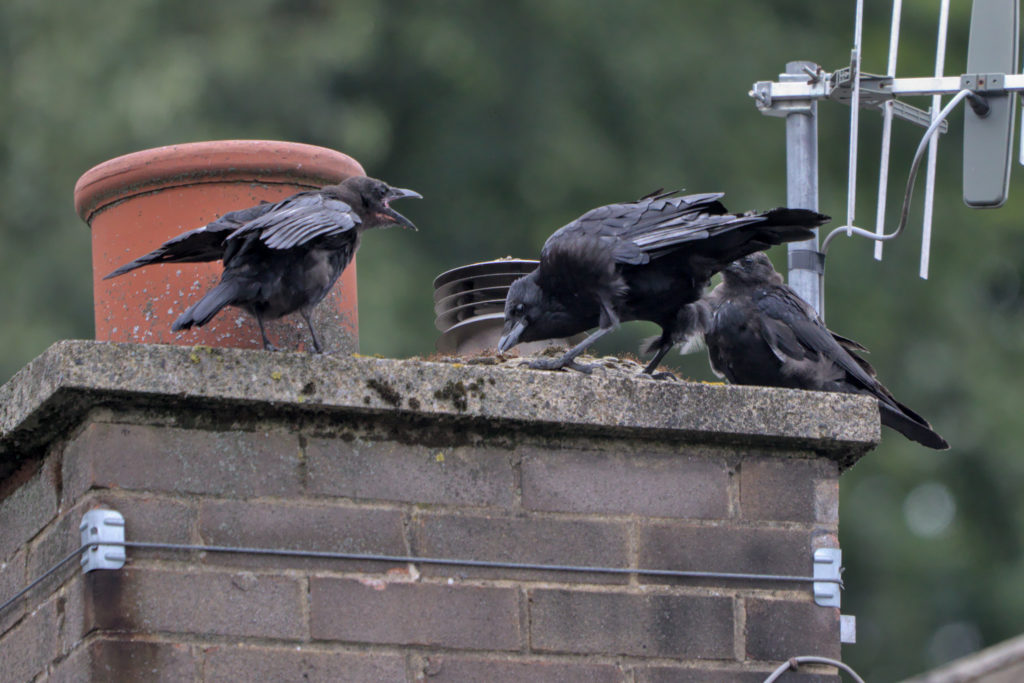 I have mentioned before hearing noisy Crows and seeing youngsters being fed.