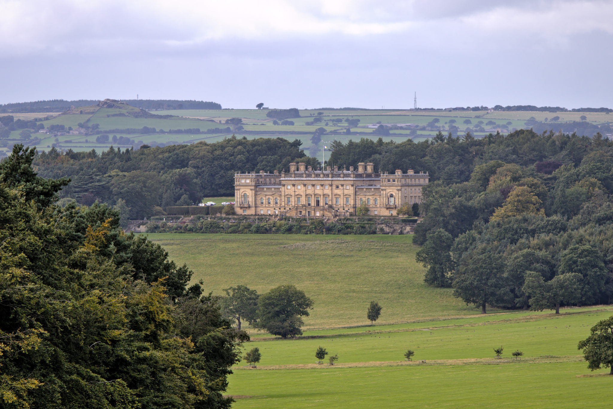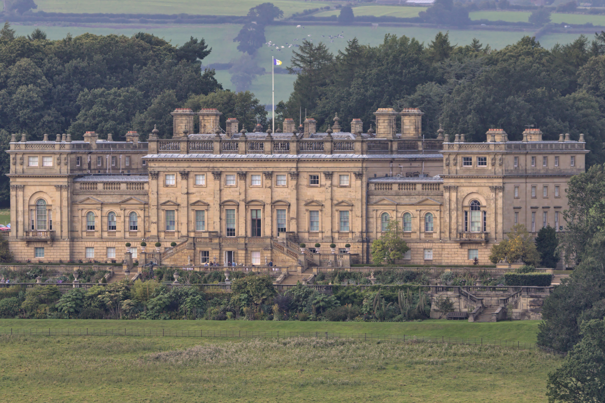 As part of the zig-zag Ingress way home I stopped off at one of the entrances to Harewood House at the end of Wike Lane. The view of Harewood House is impressive.