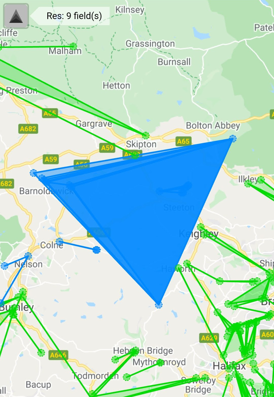 As part of Ingress I have been looking at the map again and saw the opportunity to create a few blue triangles between Beamsley Beacon not so far from Addingham, the Elephant Mural on the A6033 between Oxenhope and Peckett Welland places in Barnoldswick.