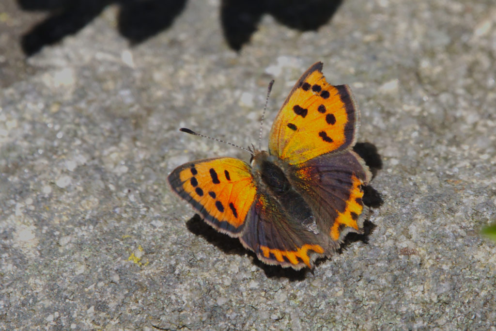 Several butterflies were flitting around but this Small Copper was keeping still in its territory.