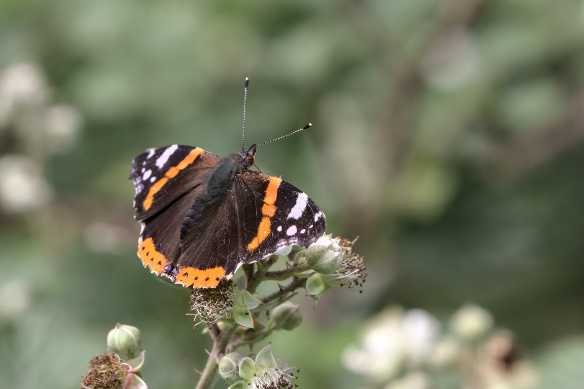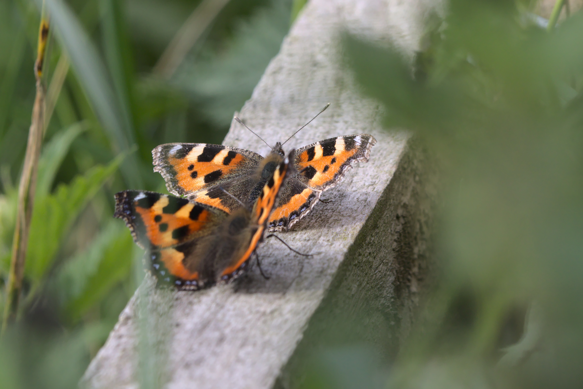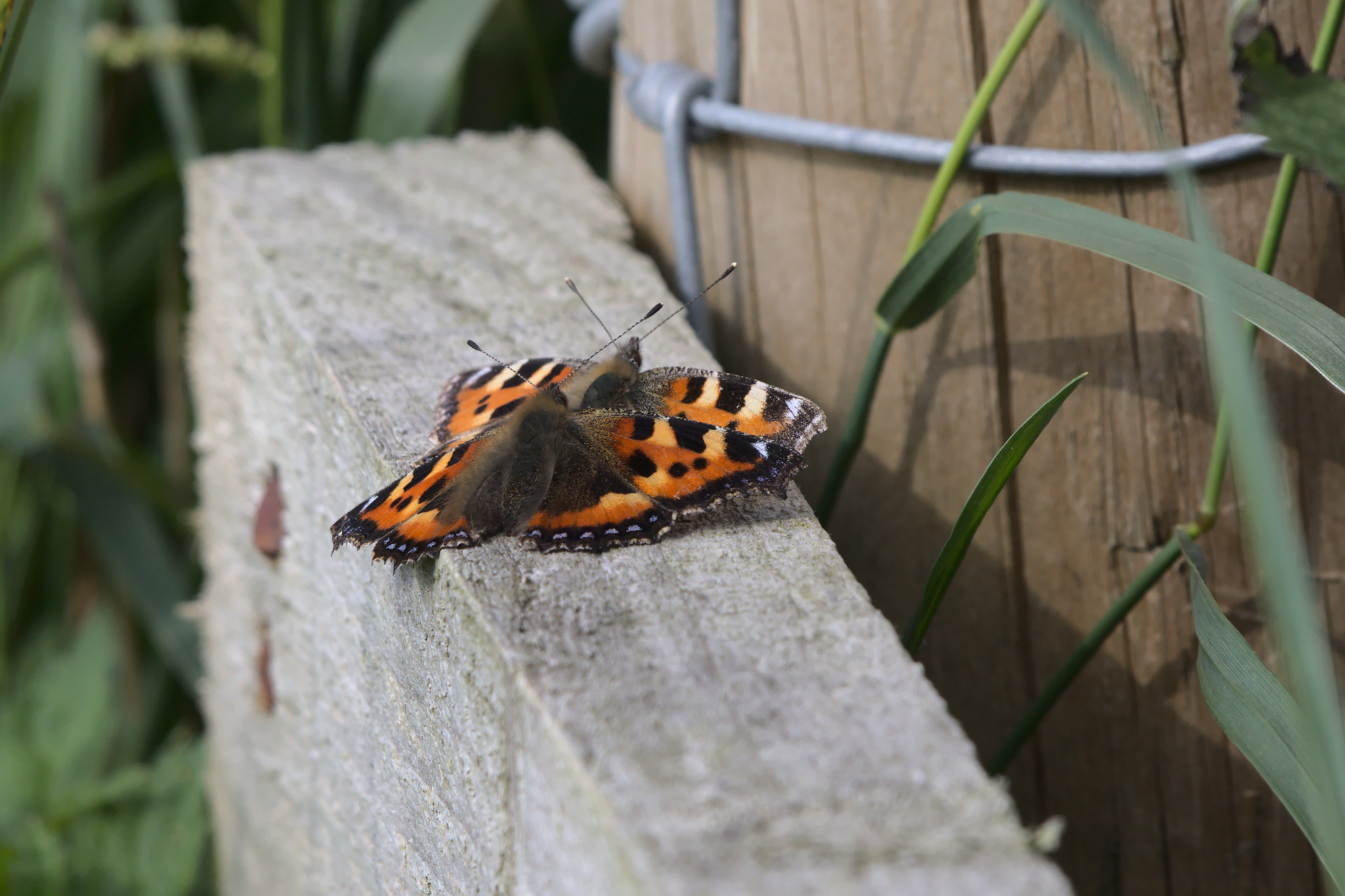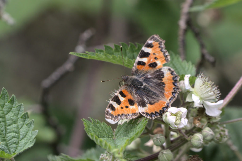 On these two trips there seemed to be more butterflies and moths around than on my first visit. The Large Whites seemed the most common but they were always flying, hence no photo of one. One of the first settled butterflies I saw was a very grey looking Small Tortoiseshell. Do they get grey with age? The others I saw, including the pair on a fence on the path across the fields to Ben Rhydding, were much fresher looking. The Red Admiral and Comma were also fresh looking.