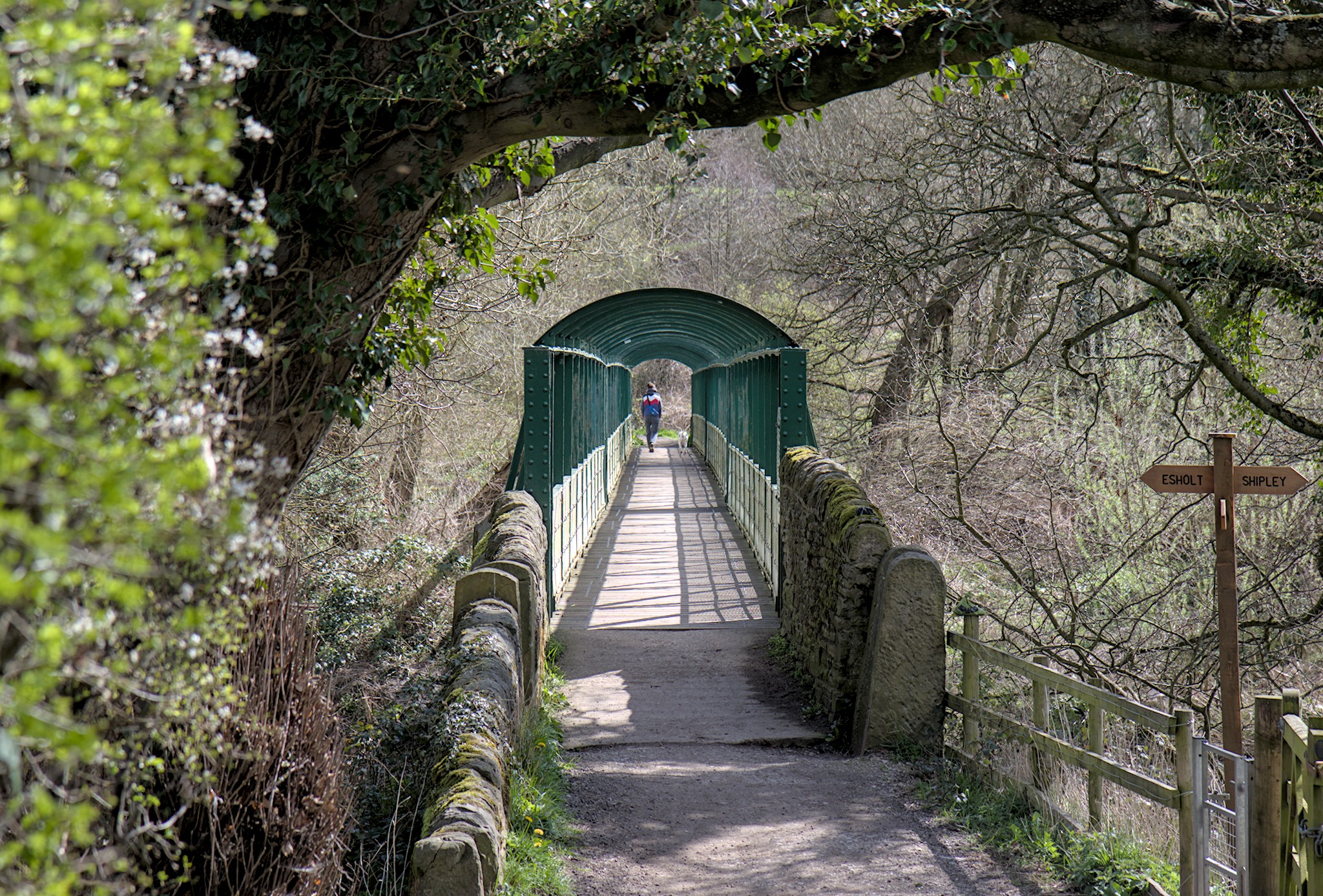 And now to the camera club challenge. These are the two I have submitted. I went back to Tong Park with wellies so that I could go paddling and get a photo of the bridge showing the right hand end of it looking as though it could drop into the water at any time. The Buck Lane Footbridge was not one I originally planned but I thought this shot was framed a bit by the tree and the walker and dog add a bit of interest.