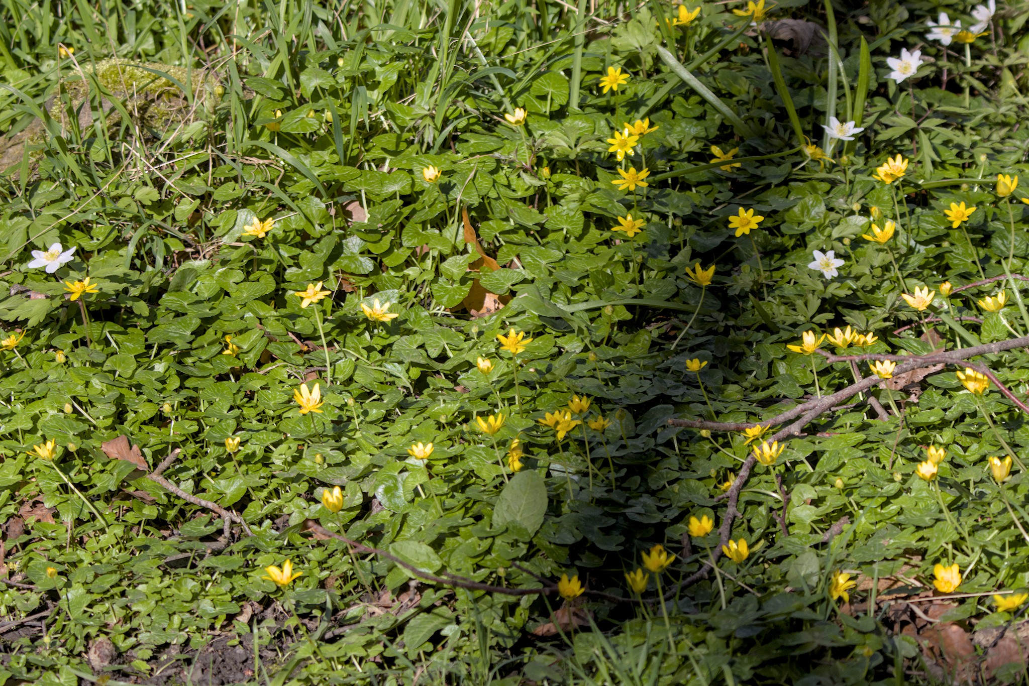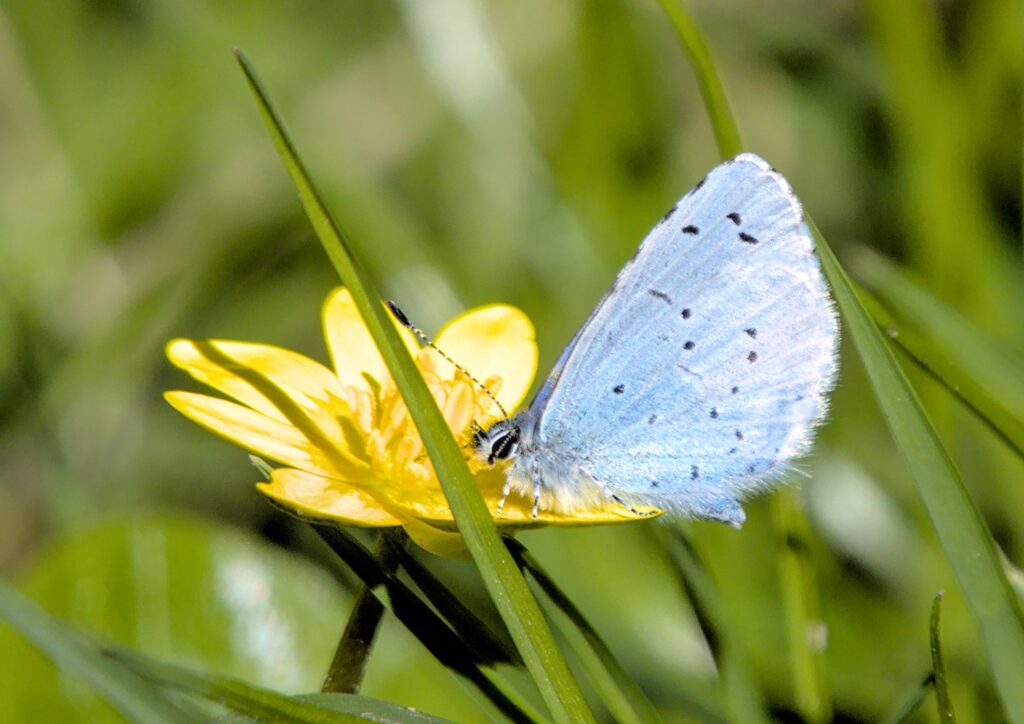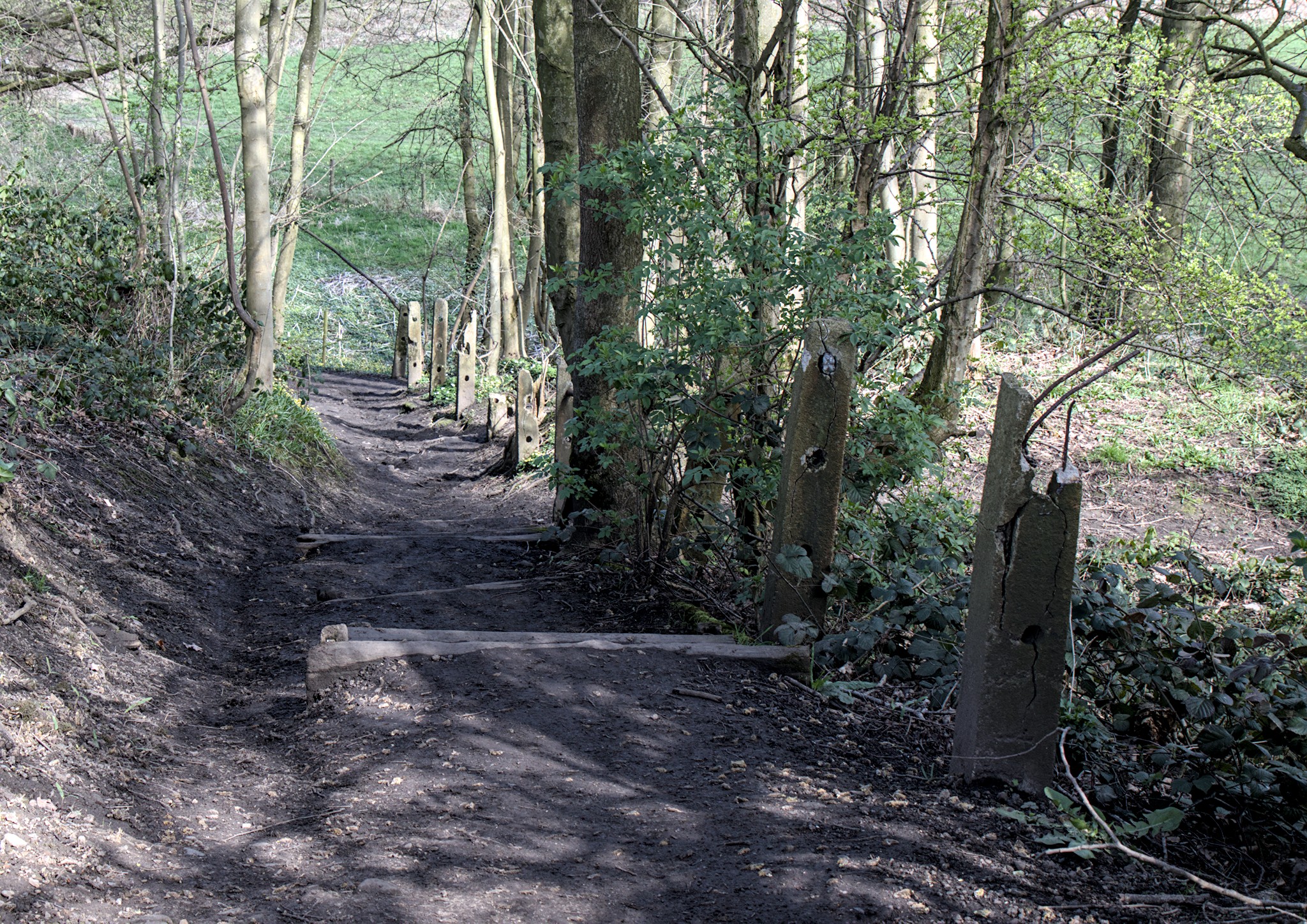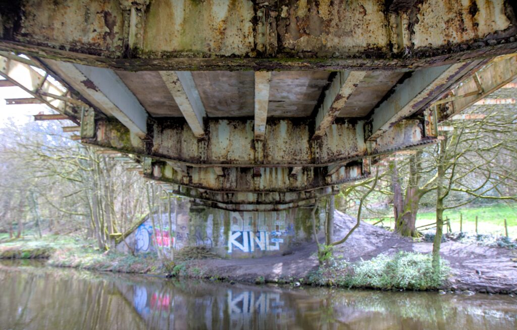 The walk then took me along the Leeds Liverpool canal to the railway bridge near Field Locks. Along the way I heard and saw several Jays and down below the canal a couple of Roe Deer. Quite a few Celandine and Wood Anemone flowers were out in the sunshine and I was really pleased to spot a Holly Blue butterfly flitting around and land on a Celandine flower. This bridge was a contender for the camera club challenge so I clambered up onto it for some photos. I looks like a well used footbridge now. If I remember I might try to find out when it was last used as a railway bridge. A quick look at some of the oldish maps show quite a few rail tracks for the sewerage works. Older maps show the Shipley Guiseley branch of the main railway but no tracks at the sewerage works which were much smaller then anyway. It looks like, on this map of 1967, the tracks used to join up with the “main” line not so far from Dobson Locks on the canal just above Apperley Bridge.