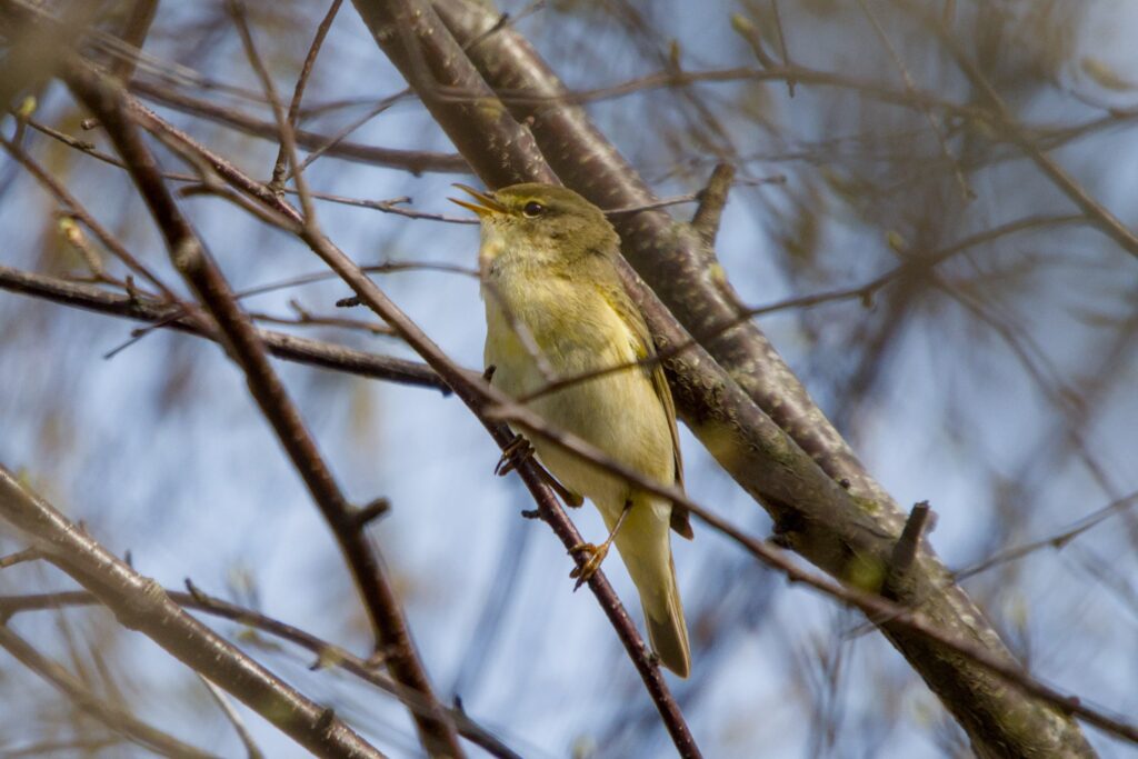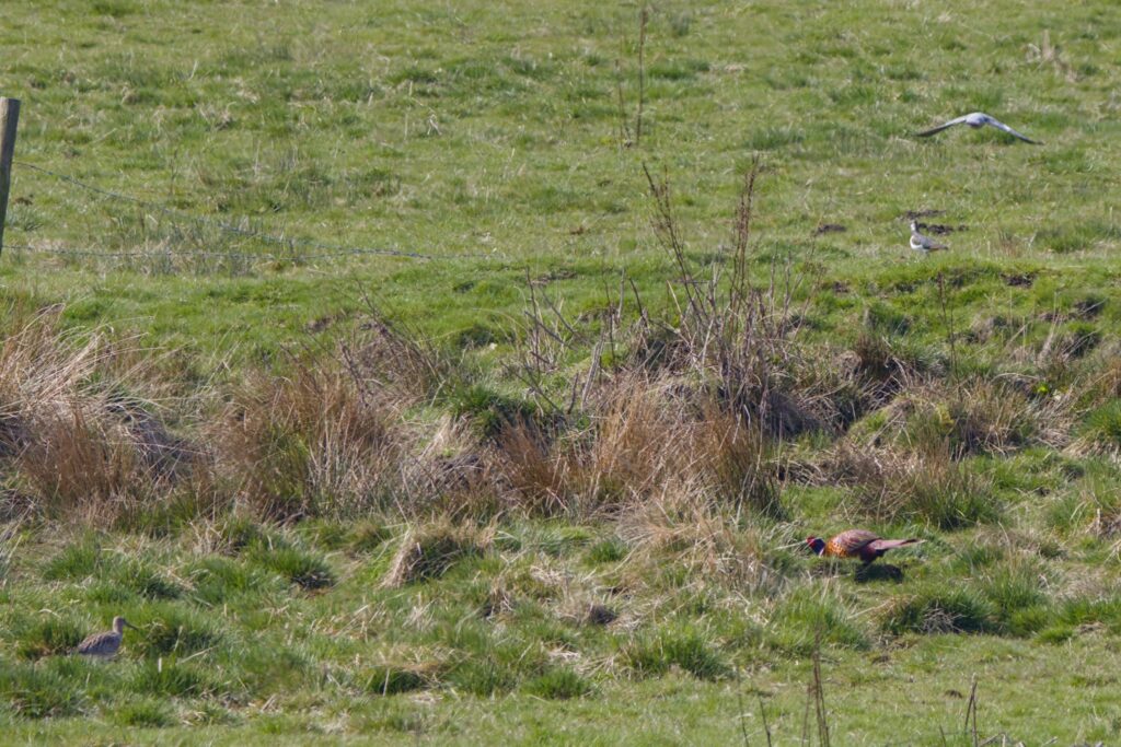 One of the sights was a Rook with a very strange looking beak. I don’t know if this is a breeding season change but I have never seen anything like that before. Lapwing, Curlew, Skylark, Meadow Pipits, Pheasant and Chaffinch were showing themselves and calling. I saw and heard several Skylark in the sky but once they are on the ground I can’t tell them apart from the Meadow Pipits unless they put their crest up. Reed Buntings were also around and I also got a good sighting of my first Willow Warbler of the year looking good in-spite of its long travels from sub-Saharan Africa.