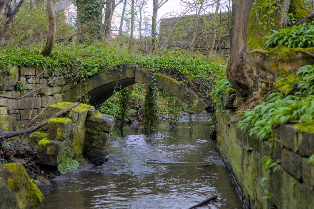 It was quite a long walk to the next planned bridge. This walk took me over the footbridge over the river near the ruins of Buck Mill. The bridge was built in 1889 and funded by the Local Boards of Baildon and Idle. The bridge has a cast plaque at each end with some of the details. I have several photos of the bridge but I put my camera club hat on and took some more. The bridge is sometimes a good vantage point to watch for birds like this Grey Wagtail. I have watched Cormorant, Heron, Kingfisher, Dipper, Goosander, Treecreeper, Blackcap, Goldcrest and Water Rail from the bridge. On this particular visit I spotted a Blackcap, a first of the year for me.