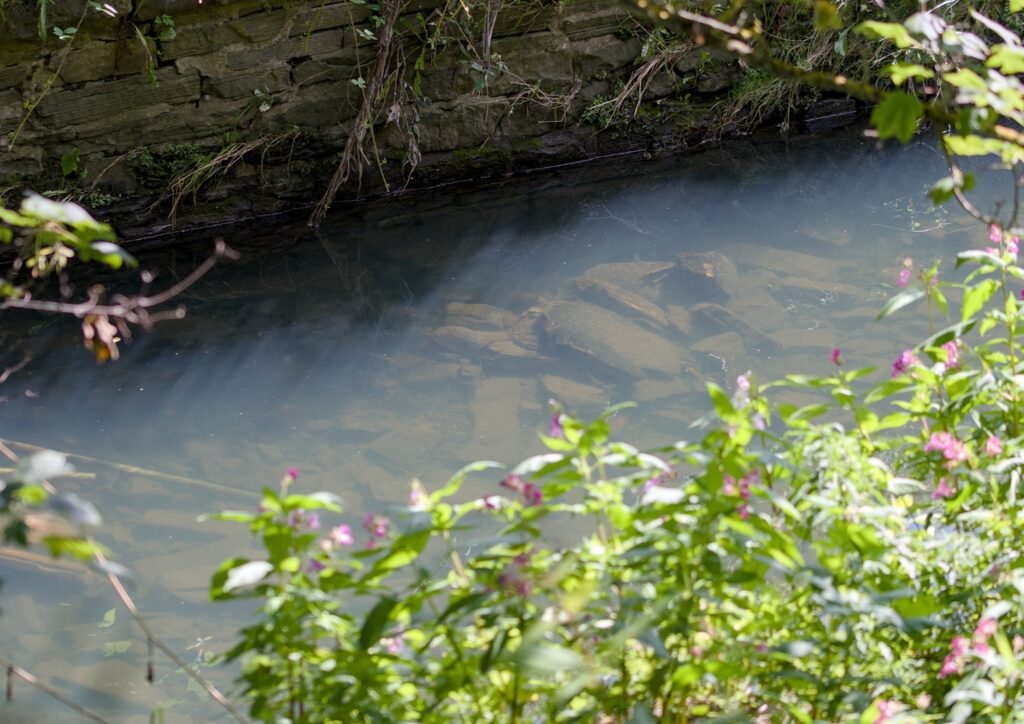 I then went across the road. The Rowan trees shading the graves on the slope were full of berries. I then headed into Potter’s Pits, I have yet to see any reference to this name, I hope I have it right. Passing where Bradford Beck was visible unfortunately showed that it was polluted. I reported it to the Environment Agency but I expect that they only have the resources to log the call and not enough people to see that it is followed up and get faulty drain connections fixed.