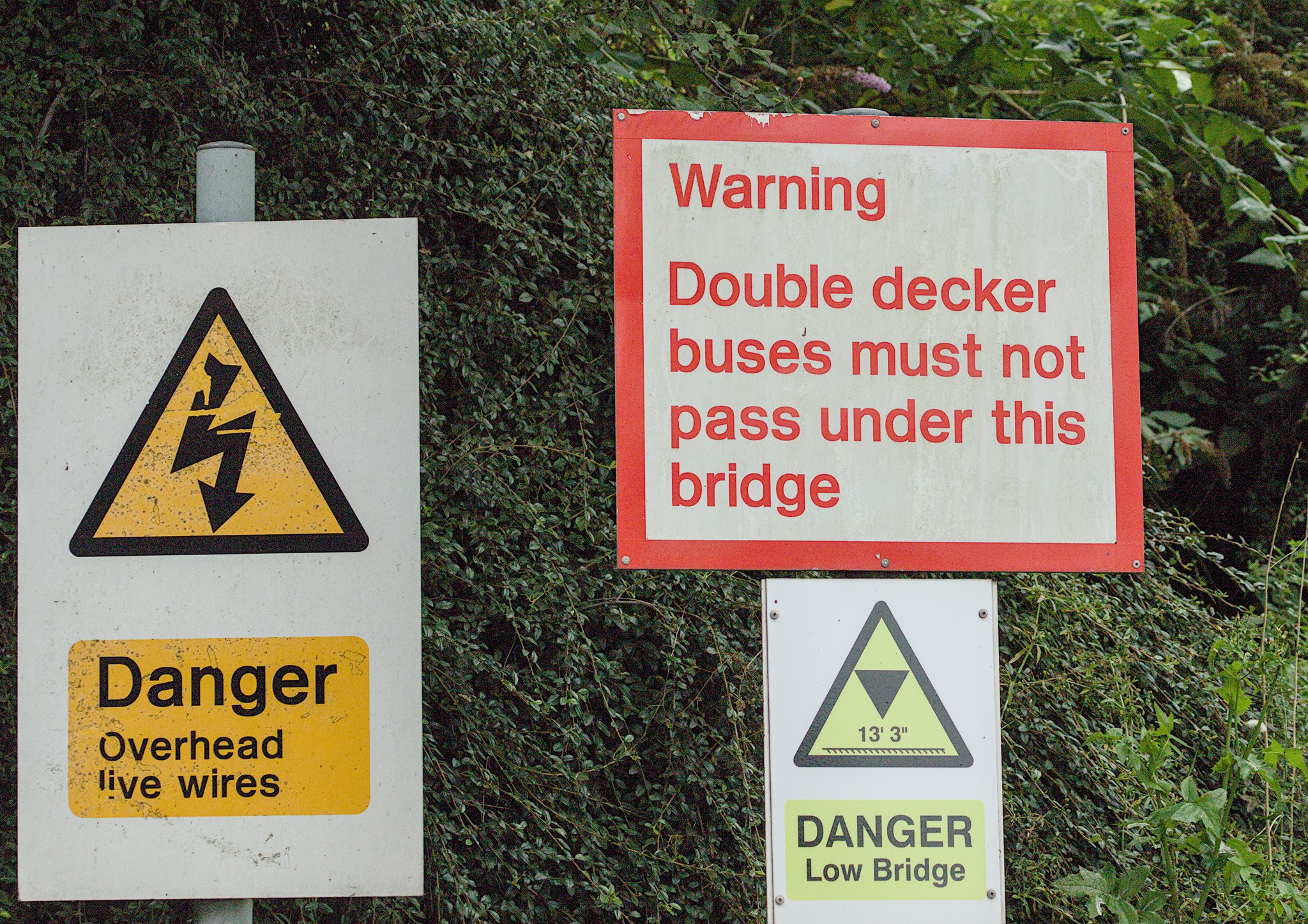 I then went to have a quick look at the Butterfly Meadow at Shipley Station. The wording of the sign next to the bridge caught my eye. Given that a double decker bus is over 14 feet high the wording of the sign on the bridge seems unusual to me. Wouldn’t it be better to say “will not fit”? I suppose the height sign says it will not fit and the red and white sign is implying – “OK. You know it won’t fit but if you feel like trying then the overhead wires might get you.”