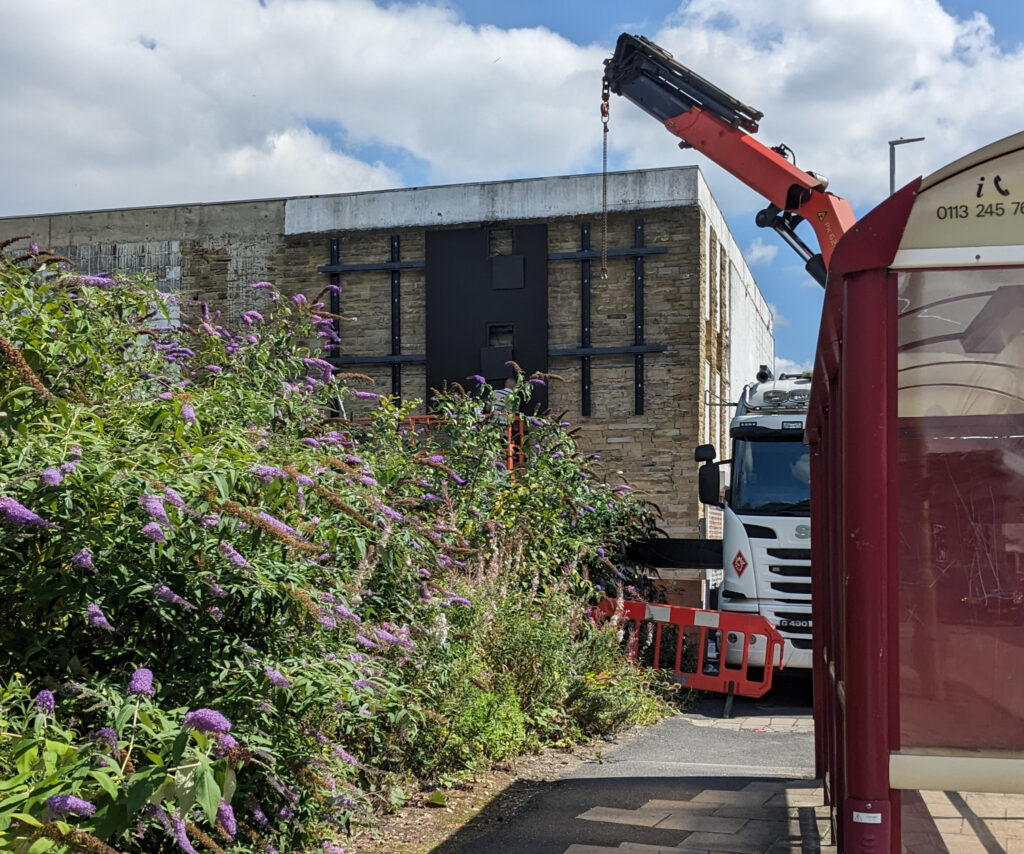 The small piece of ground at Fox Corner where the cinema used to be has been reclaimed rather nicely by Nature. A big advertising screen has been installed on the end of the first building there and it looks as though they might be keen on keeping the plant growth to a height such that it doesn’t hide the screen from view.