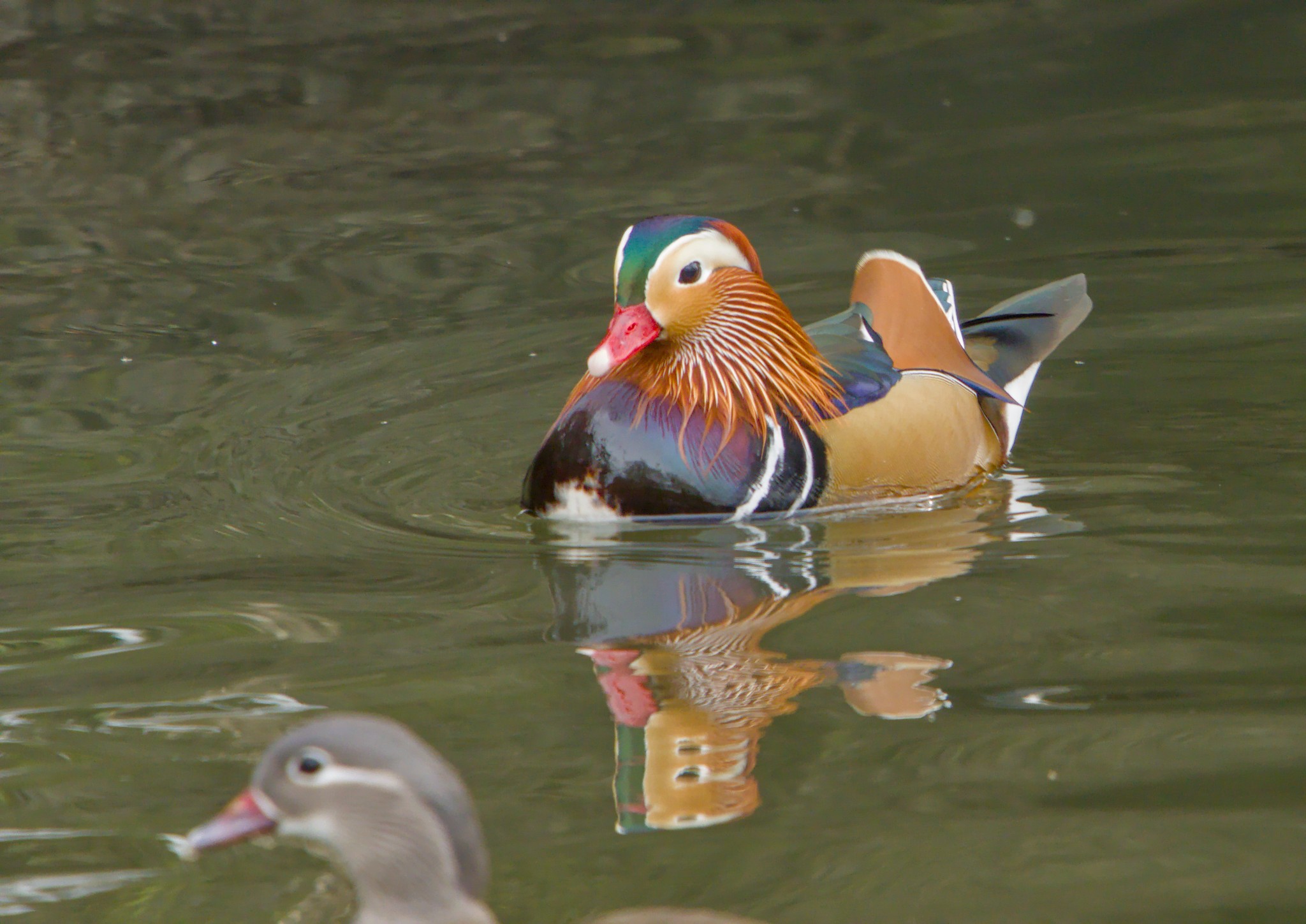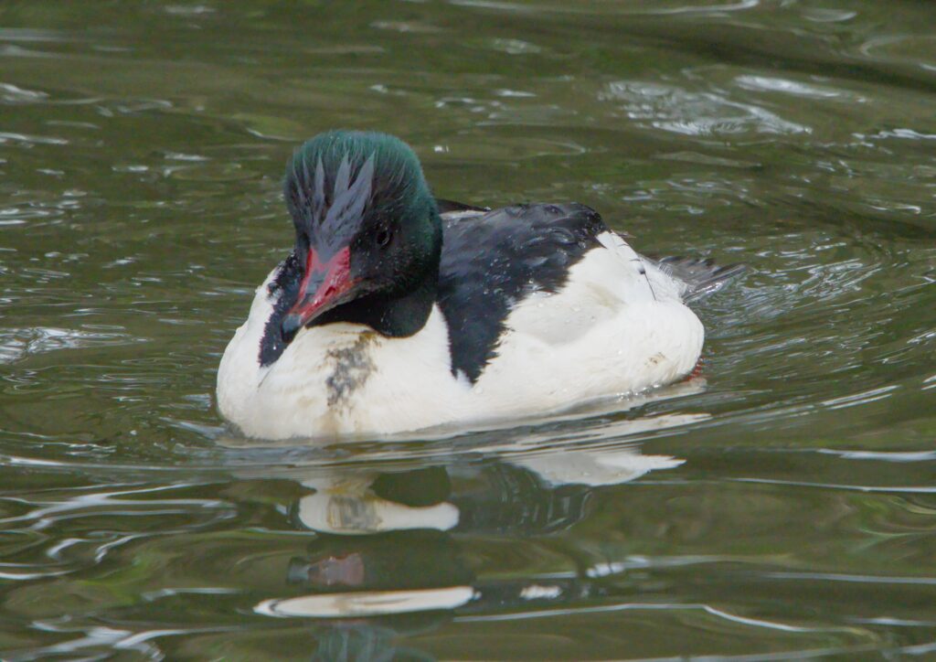 As has often been the case recently, as I got to the gate to the reserve a Cormorant flew off up river. I was hopeful that it, or another one would come back down. There were a few Mallard and Goosander around the rocks on the other side of the river and a little further up river a pair of Gadwall Ducks. Not something that I have seen before on that stretch of the river. There were quite a few Moorhen and a pair of Mandarin Ducks. One of the male Goosander looked as though he had been slicking his head feathers down in a pattern. At the Spider Club feeding station lots of Dunnock were feeding on the ground with a couple of Bullfinch looking for food in the hanging tray. At that time the Coast Guard Helicopter flew over.