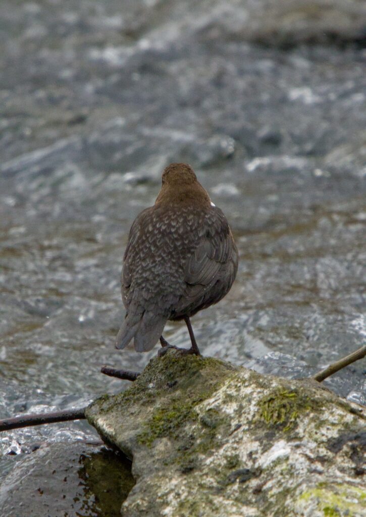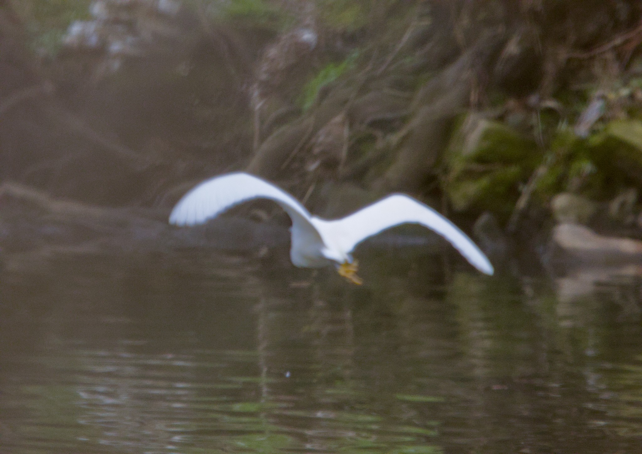 I then met up with another frequent visitor to the reserve and we walked down river to the footbridge at Buck Lane. He said he would show me where he had seen Water Rail before. While walking down I was too slow for the Little Egret that flew past. I did manage to at least get it in the frame but through lots of branches. At least it is recognisable as a Little Egret from its yellow feet. Just before we got to the bridge we spotted a Dipper on one of the rocks. It was not behaving like a Dipper. It was upright, not dipping, and stayed on the rock while we walked past.