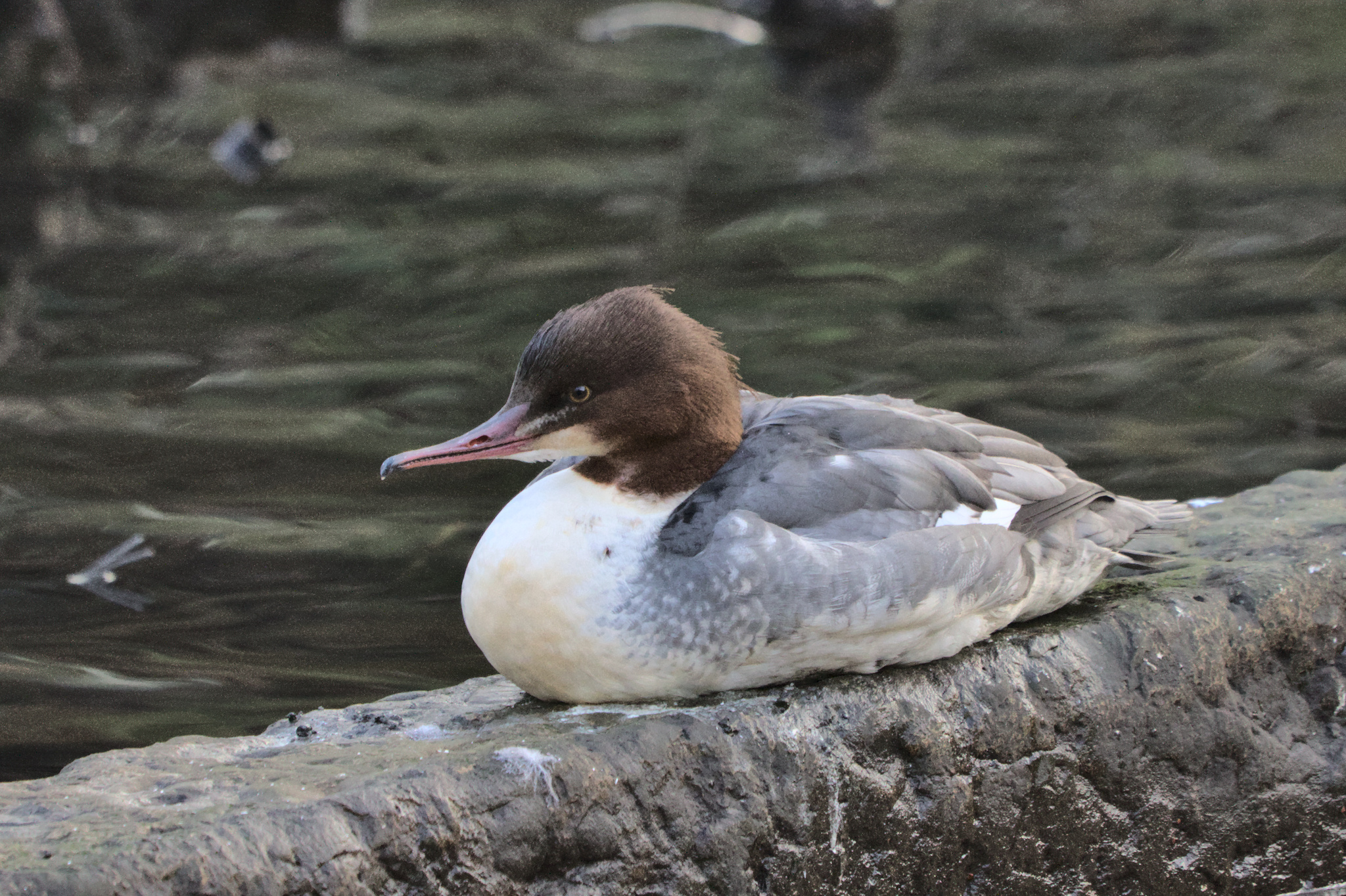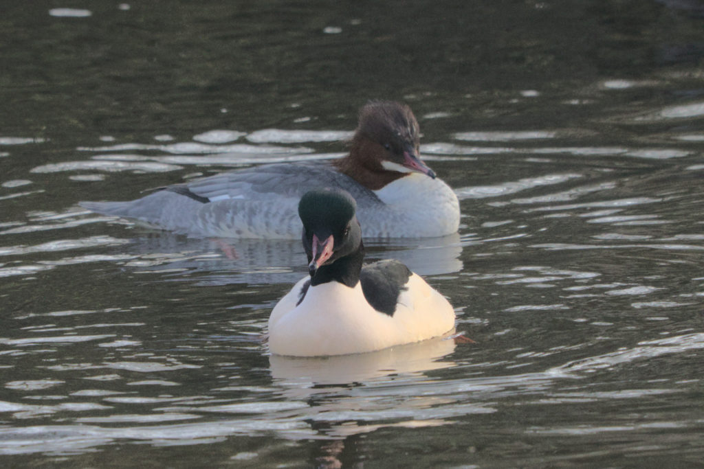 As is often the case the first things to see were Mallards and Goosander. Goosander numbers are greatest over winter and male Goosander are back either from the moult trip to Norway or the Lakes or simply more evident on the river after their moult when they look similar to females.