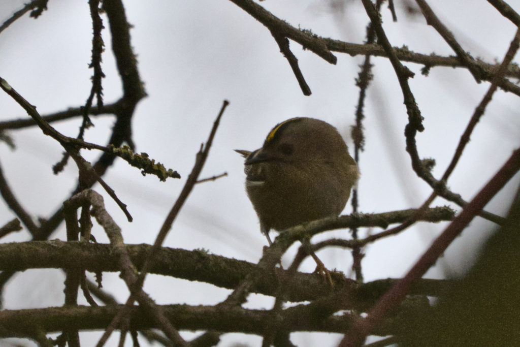Its not a very good shot but as we were walking back we met someone who told us they were hoping to see a Goldcrest. Within 30 seconds of parting we saw a Goldcrest low enough in a tree to at least get it in the frame, with another Goldcrest higher up. A little further along we met up with him again and told him we had seen 2. After parting again we carried on and very soon stopped at a sound and saw 3 Goldcrest in a bush. Not bad, and I hope Paul got to see some that afternoon too.