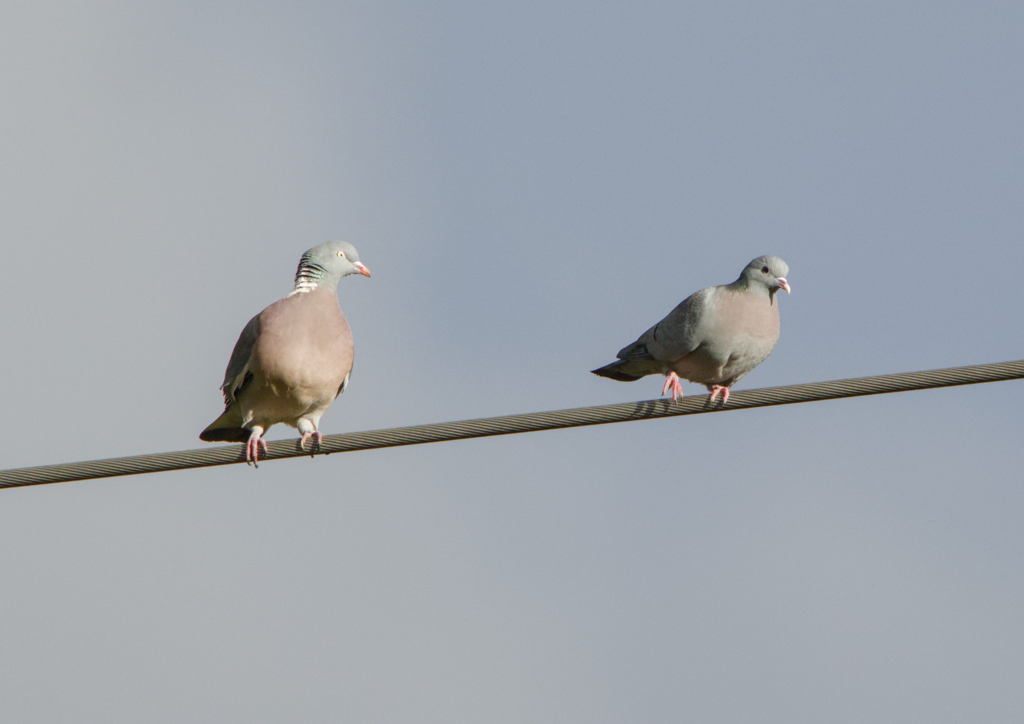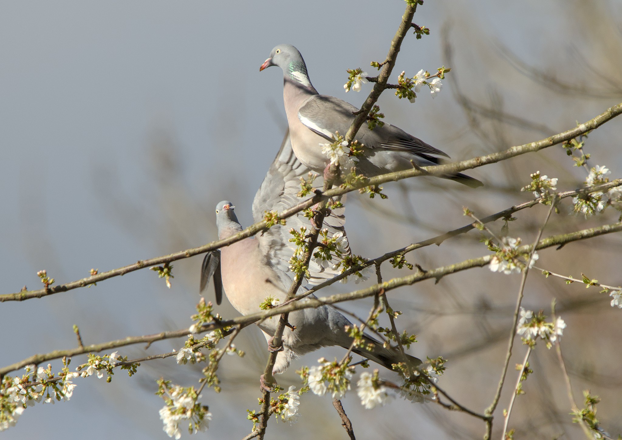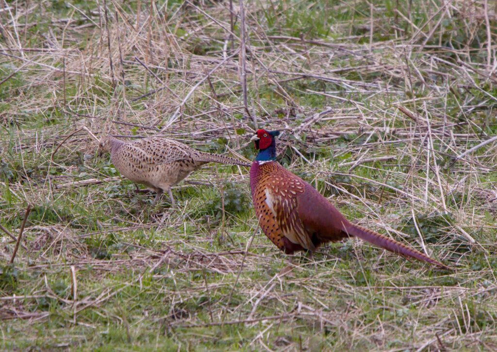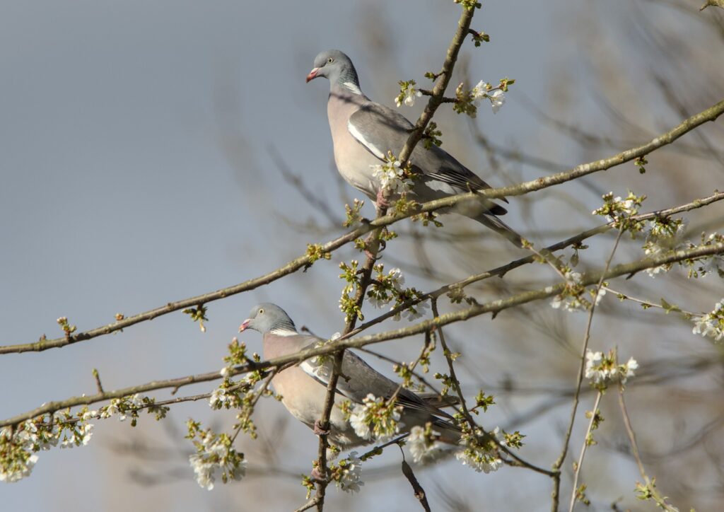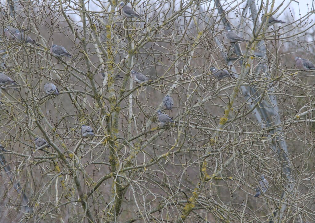 The Magpie looked rather menacing as it prepared to fly into the Spider Club Feeding Station. Near the pond spotted a pair of Wood Pigeons lookng comfortable with each other until the one I assume was the male lent in a bit. The other one gave it a quick whack with its wing and turned away. A Wood Pigeon landed near a Stock Dove on the power cables. Another Wood Pigeon joined them and started to sidle up to the other pigeon which didn’t think much to it and flew off. The pigeon them started sidling up to the Stock Dove which thought even less of it and flew off.