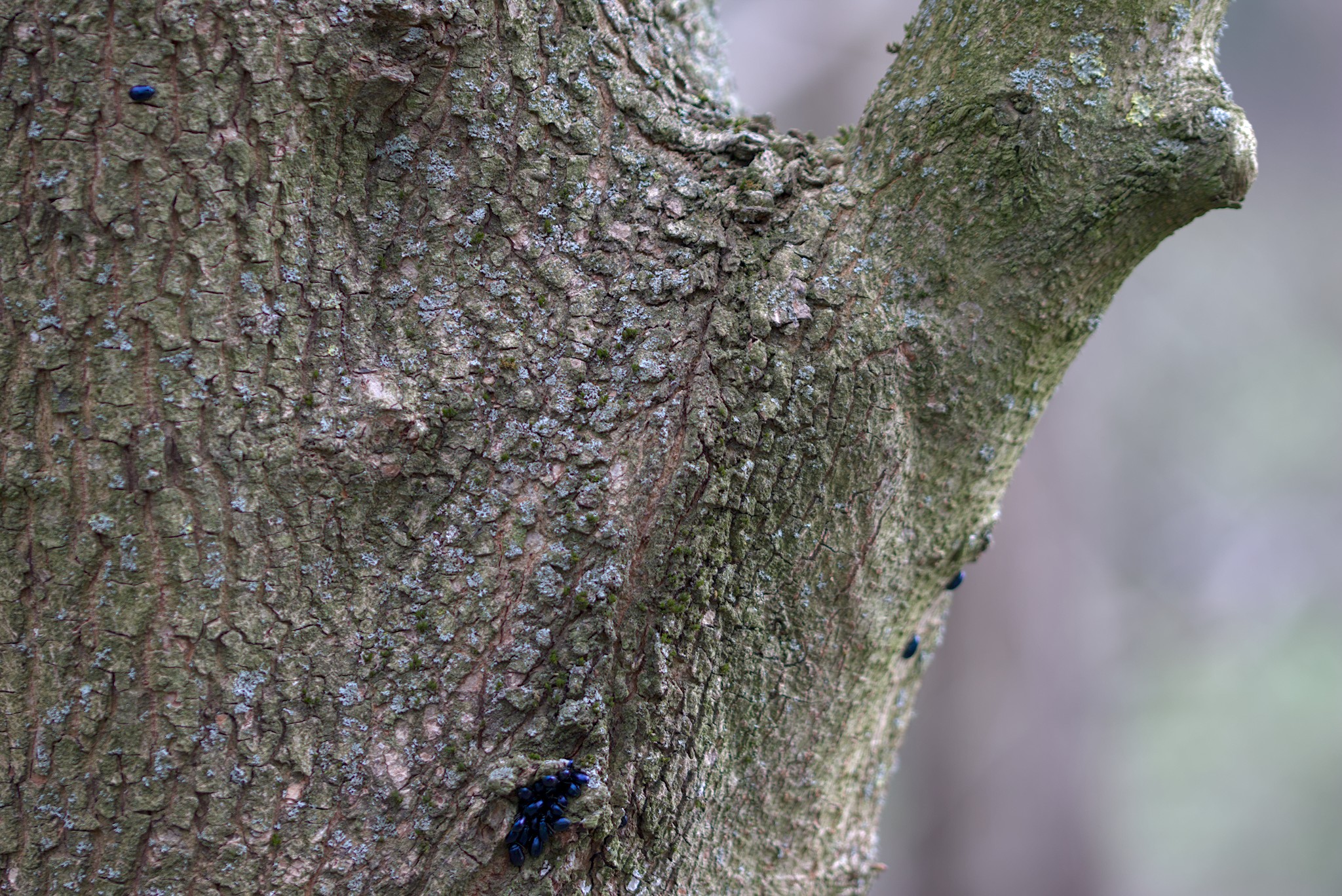 I have also spotted one (ONE) of these beetles on a silver birch but that is a bit different to having the the hundreds on the Field Maple. The adult beetles will have overwintered under ground or in leaf litter and emerged recently, so why not climb up the nearest tree? I expect that when the weather warms up they will be off looking for Alder trees.