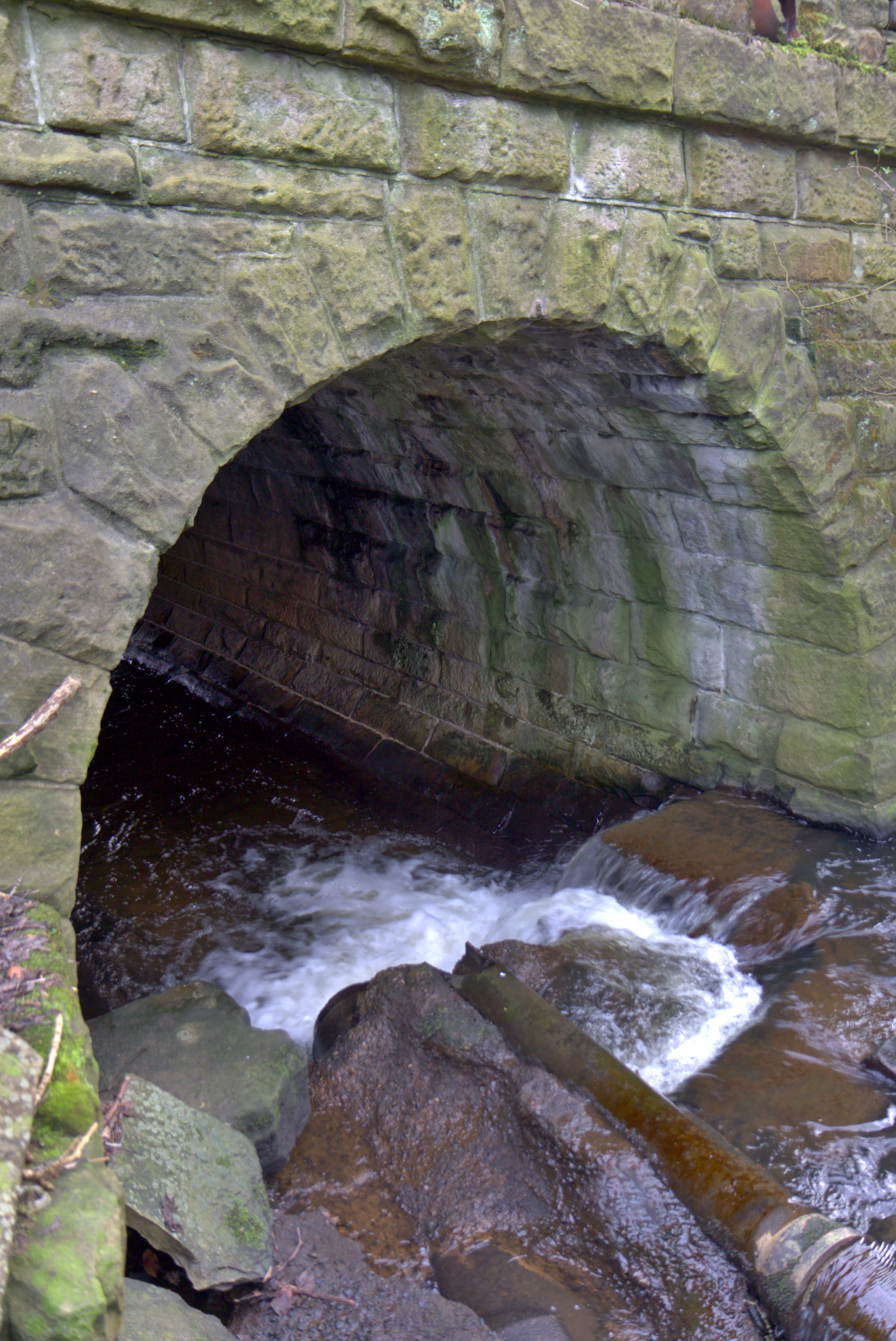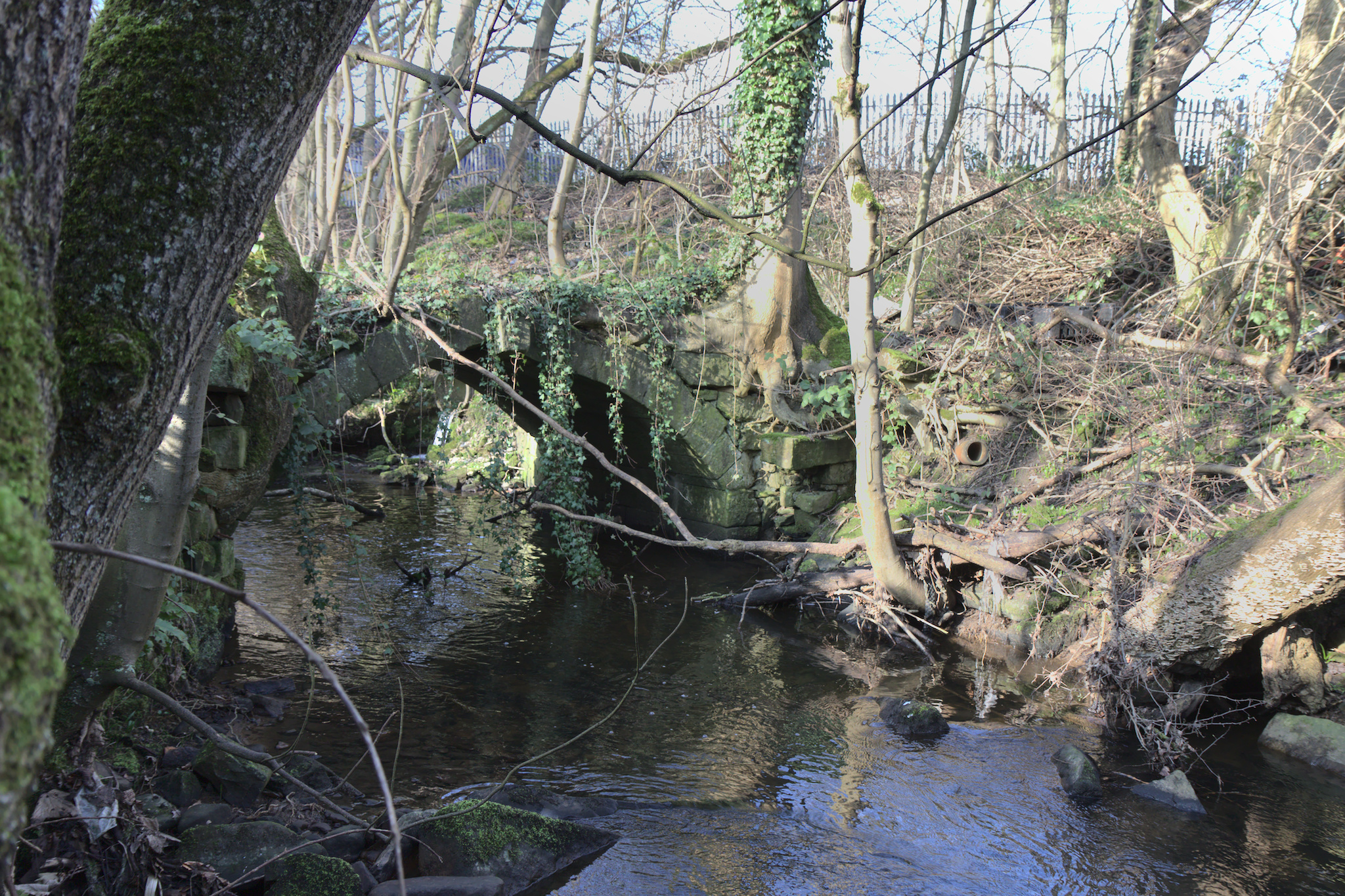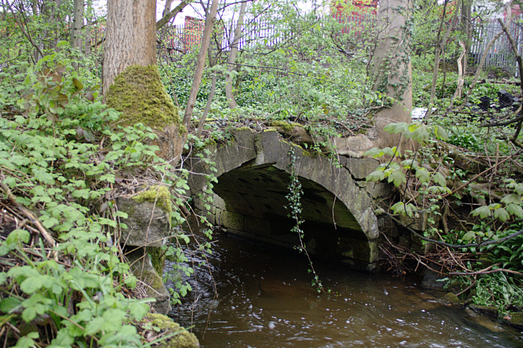 These photos show where the beck flows under the Industrial Estate, a view of part of the estate and then the last is a view of the beck as it goes under Otley Road. As you can see, this bridge is a lot more substantial than the small stone bridge.