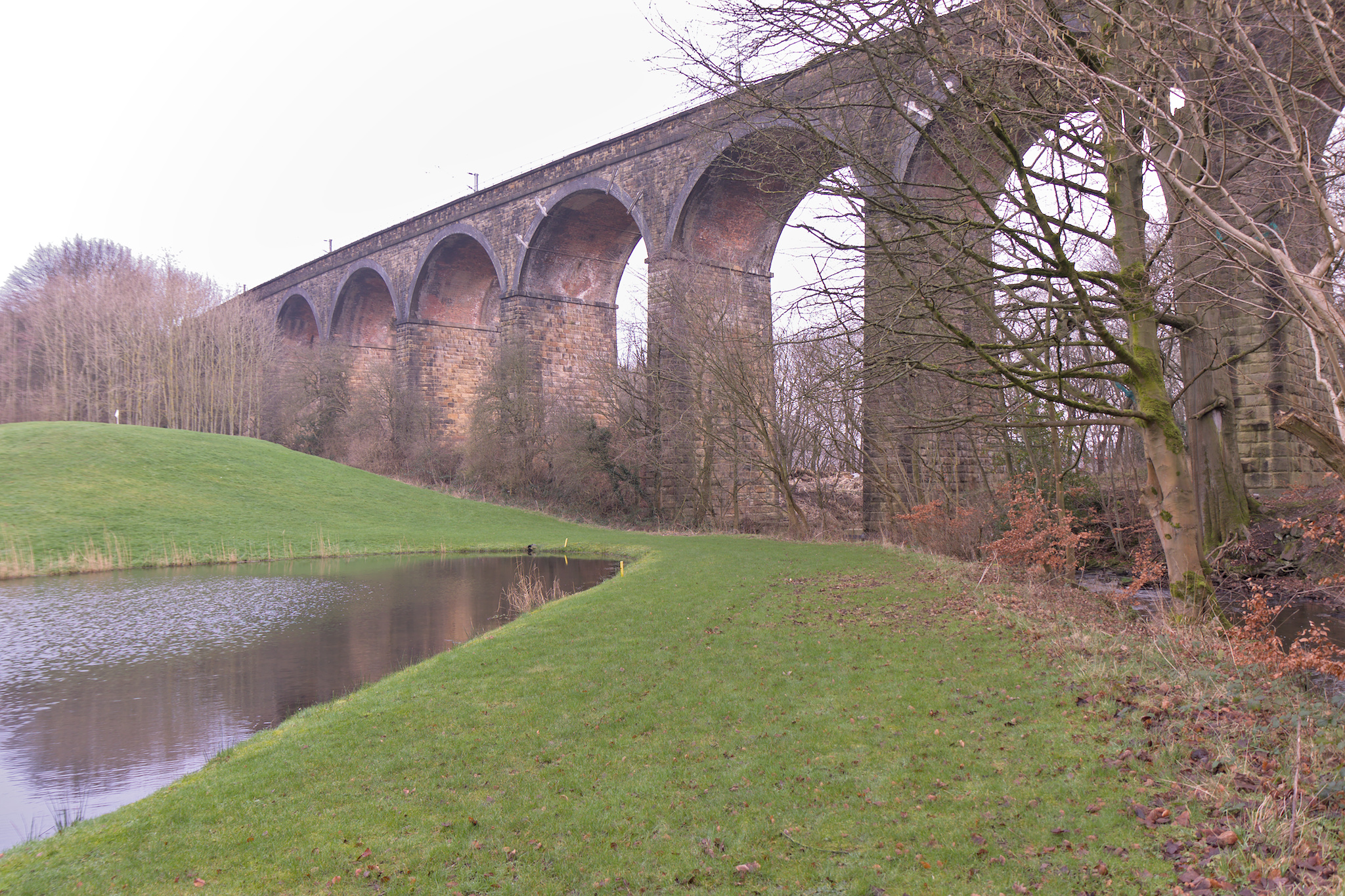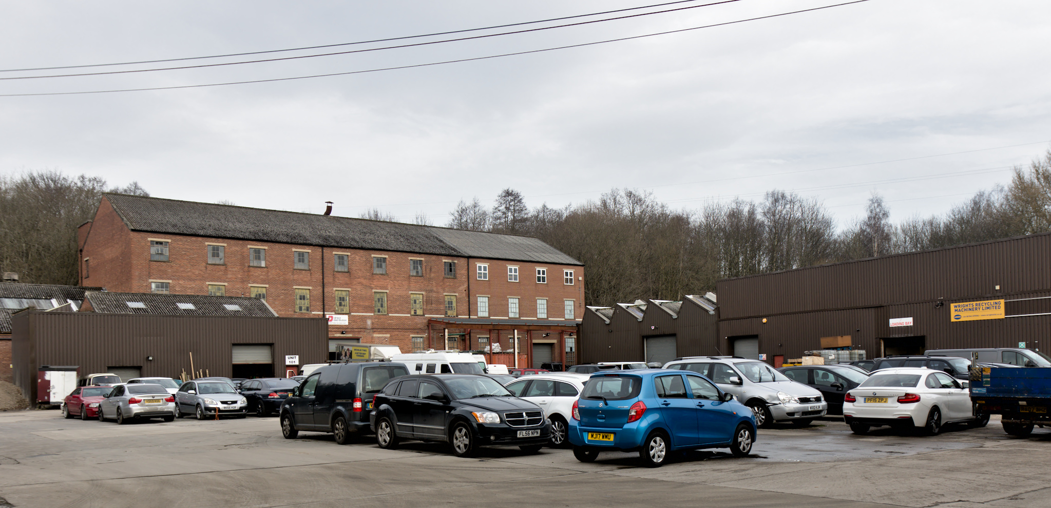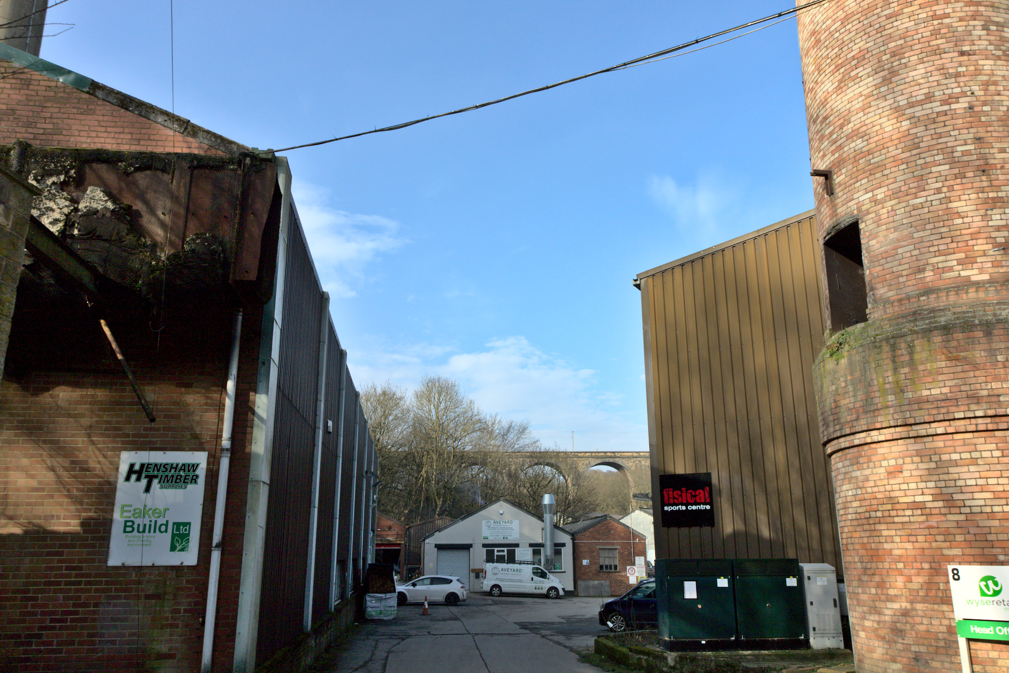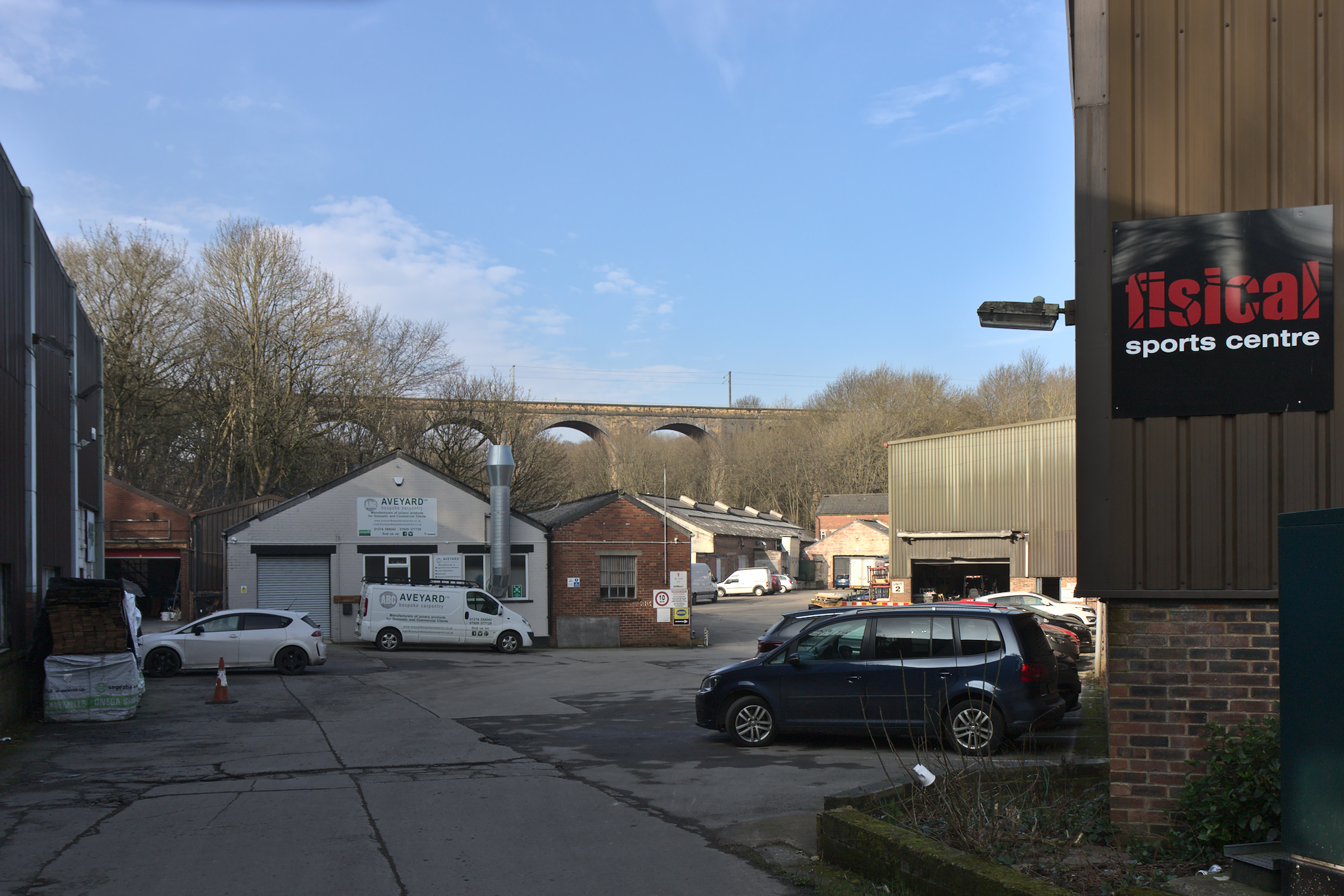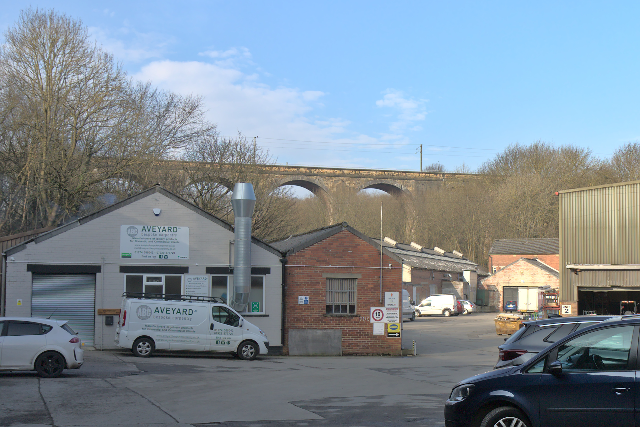 Tong Park Industrial Estate with the railway viaduct in the back.