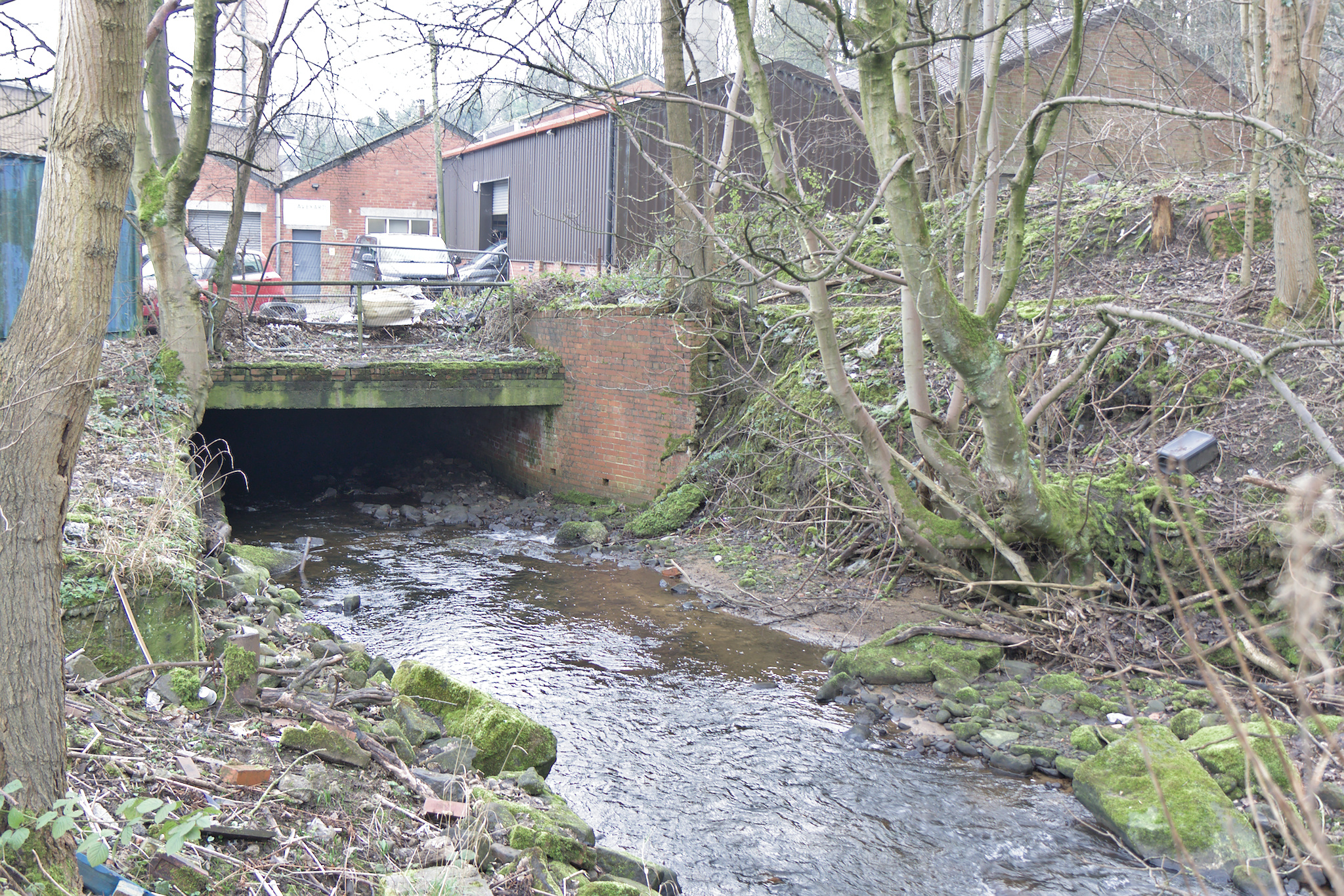 The photos above are taken in Tong Park Industrial Estate as I walked up-stream to find where the beck disappeared under the Ind Estate. Keeping to the South side of the beck meant it was tricky to get a shot of where the beck went under the Ind Estate.