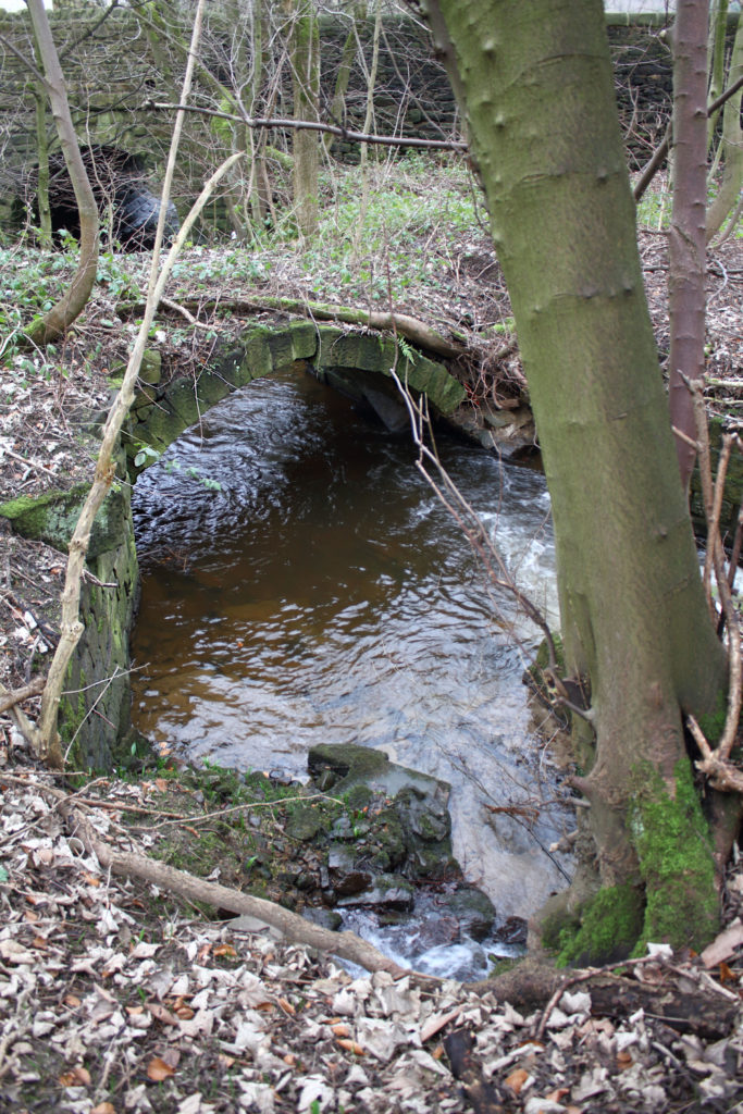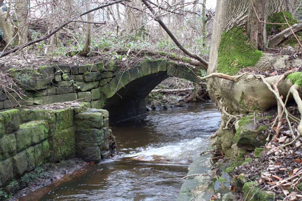 On Friday afternoon (7 Feb 2020) I finally made the time to go and have a look at the stone bridge over Gill Beck next to the Otley Road bridge. It had looked as though work was going on there even after the wall next to the road had been repaired, so I was curious to see whether anything had been done with the stone bridge. Having seen it now I think the time was being spent building-up the slope to the wall to give it decent support. There is a photo of the slope up to the wall somewhere below.