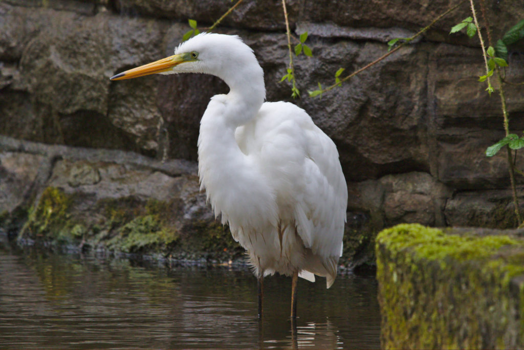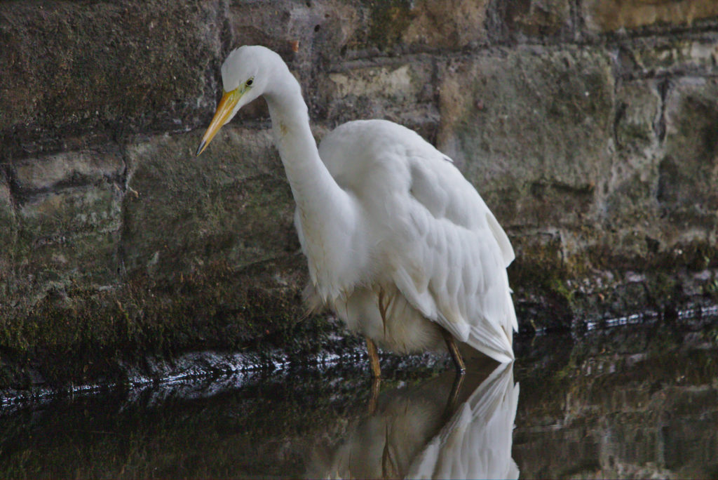 Yesterday on facebook I saw that someone had posted a photo of a white bird that they had seen on the river Aire at Roberts Park the day before. Because of its yellow beak, the shape of its neck and apparent size I suggested that it was a Cattle Egret – this would be very surprising if I was right, we don’t get them round here and even where we do (down South) they are Winter visitors. So I went out in the rain to have a look.