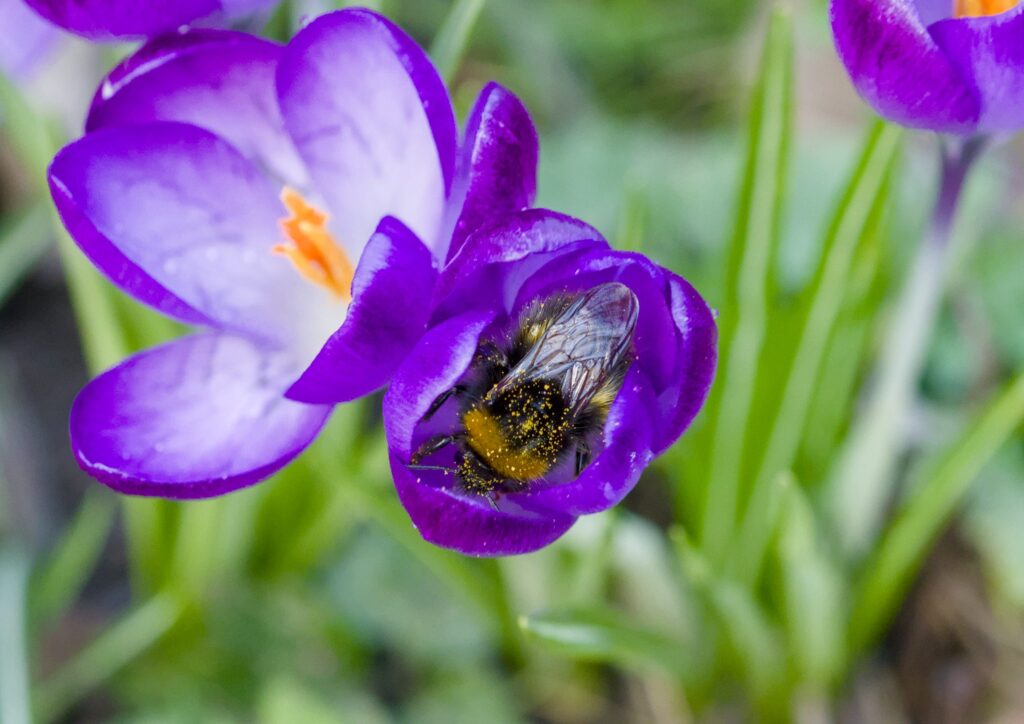 There were a few little carpets of Crocus but I was a little surprised to see a Bumble Bee having a root around inside one of them.
