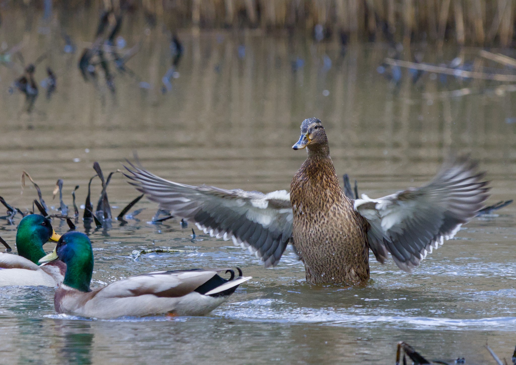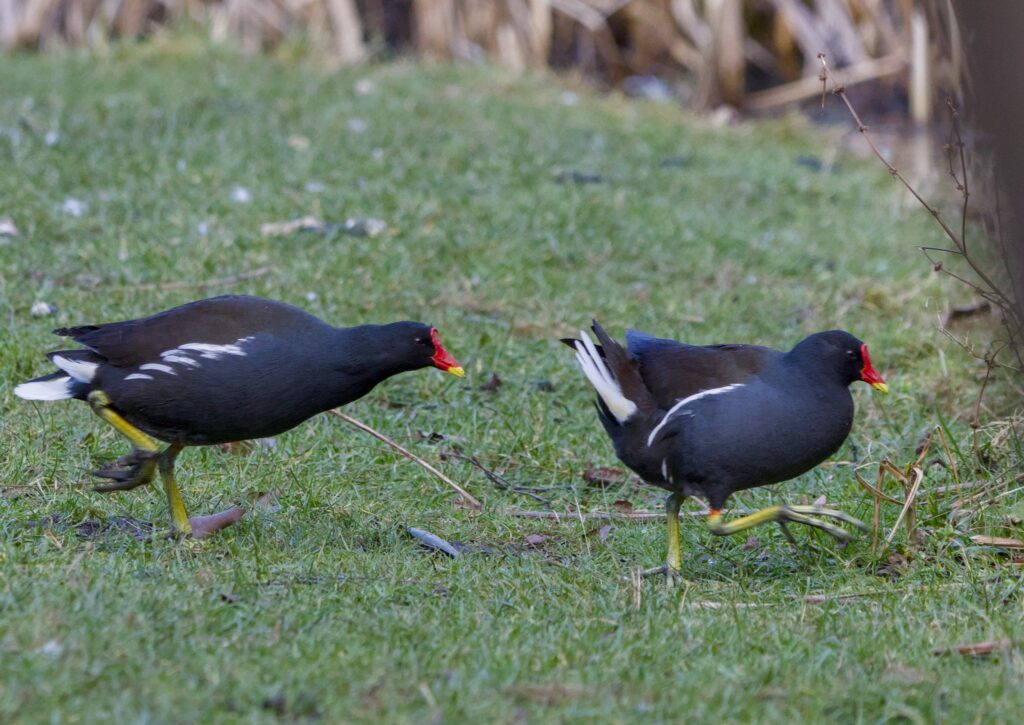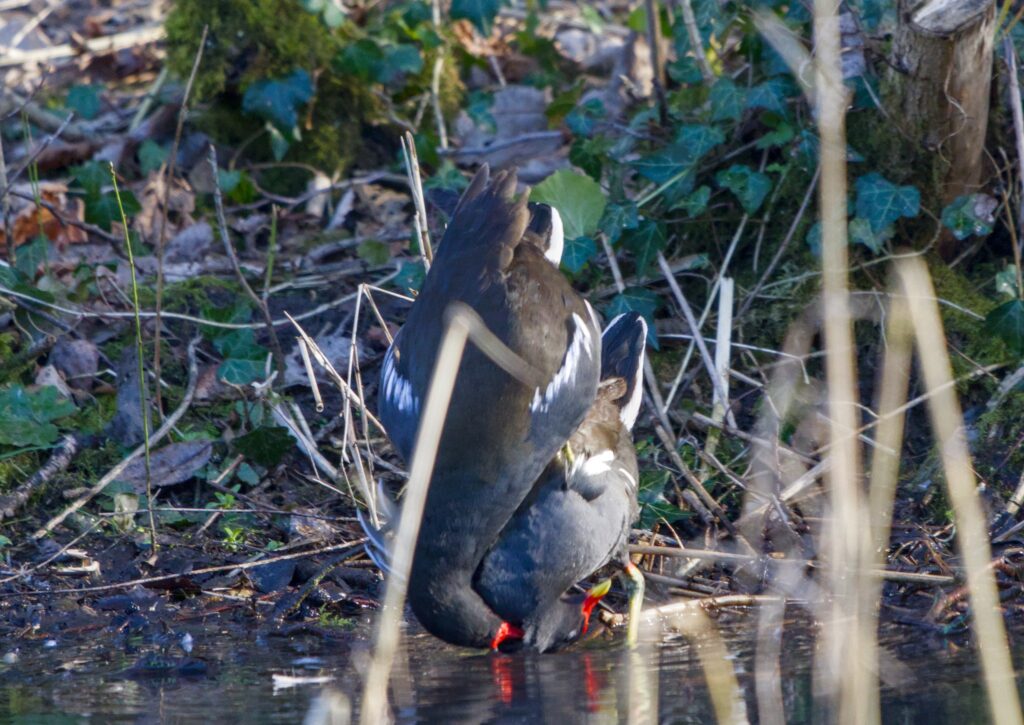 The Mallard on the pond looked as though they were paired for the Spring and a Moorhen pair were definitely feeling Spring like. I never knew they were so acrobatic when mating. The female almost tucks her head under herself, between her legs, while the male falls off, head first. They did have another go near where I half expect them to build a nest (dogs on leads please if they must be in the reserve) and it was not quite as acrobatic, I think some of the reeds prevented the female tipping up quite as much.