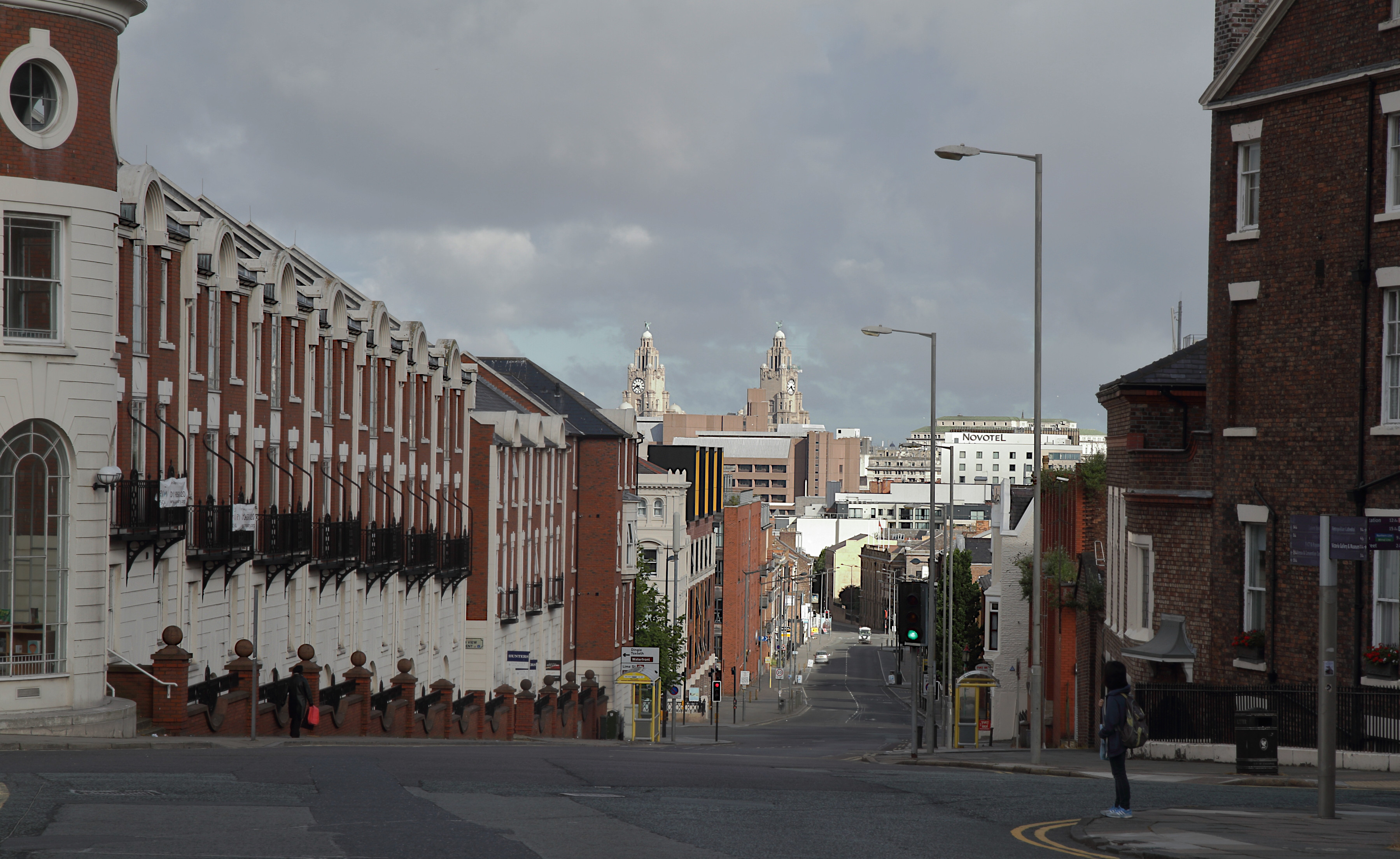 Just along from the cathedral, at the junction with Rodney St. you can look down Duke St. to the centre of Liverpool and see another iconic building – the Liver Building, which is down by the river.