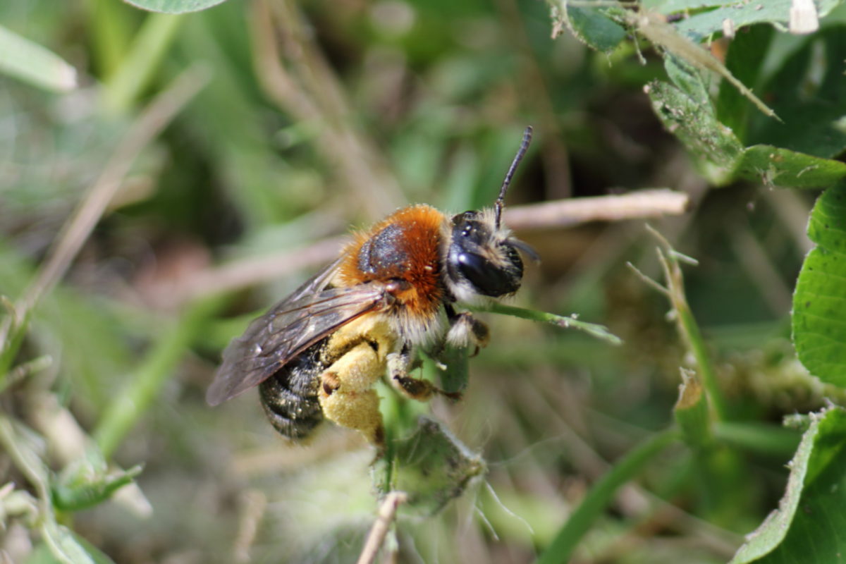 During the hot days we have had this month we had quite a few bees in the garden. A lot were flying from blossom to blossom as you would expect of a pollinator but quite a few were hovering over the soil of the flower beds and grass at the front of our house. (To give it a more accurate description it should be “the green bit at the front of our house and the strips of soil round the edges”.) The photo above is of one bees on the green bit.