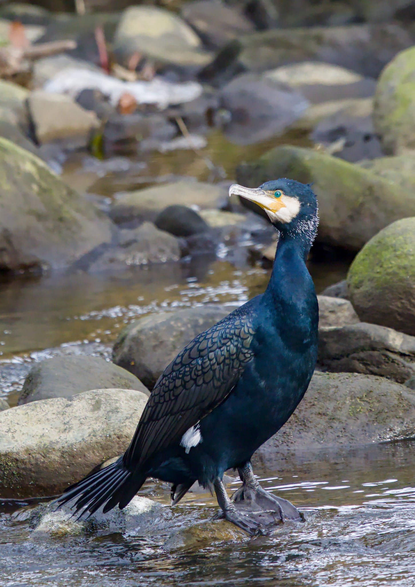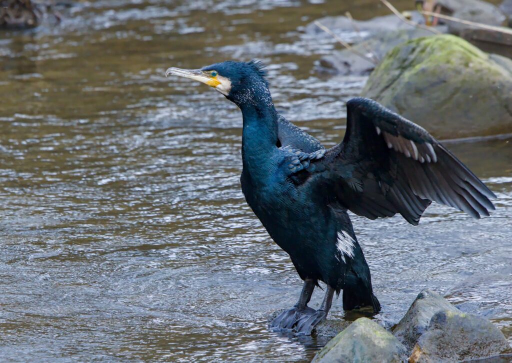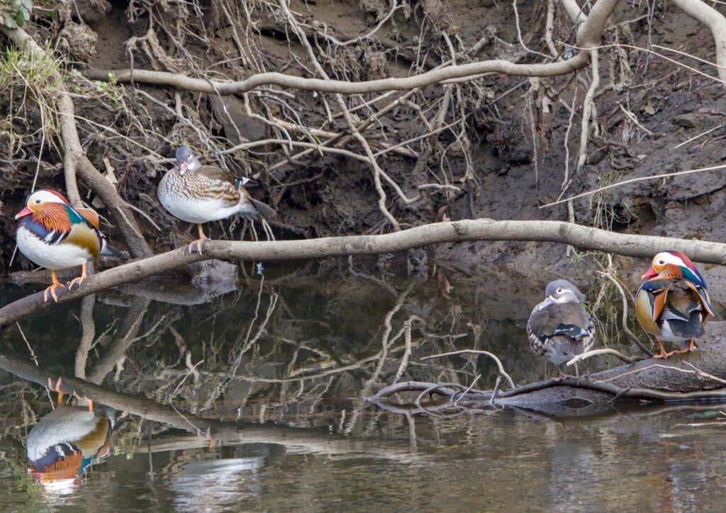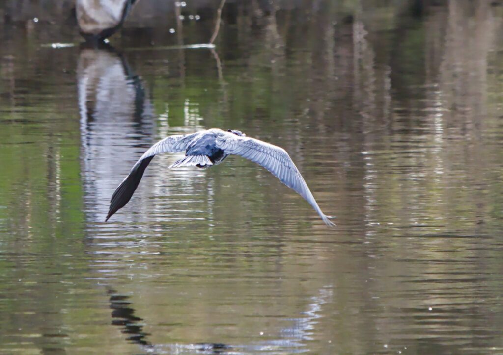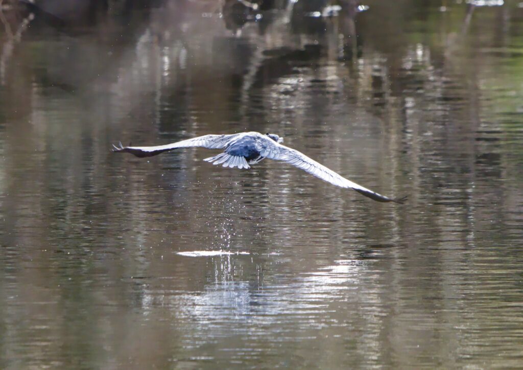 Two pairs of Mandarin Duck, with the males looking rather colourful, were quite close to the down river entrance to the reserve. As was a Cormorant, unfortunately I was behind the noticeboard and several trees were in the way when it decided to fly up river so I could only get photos of it flying away.
