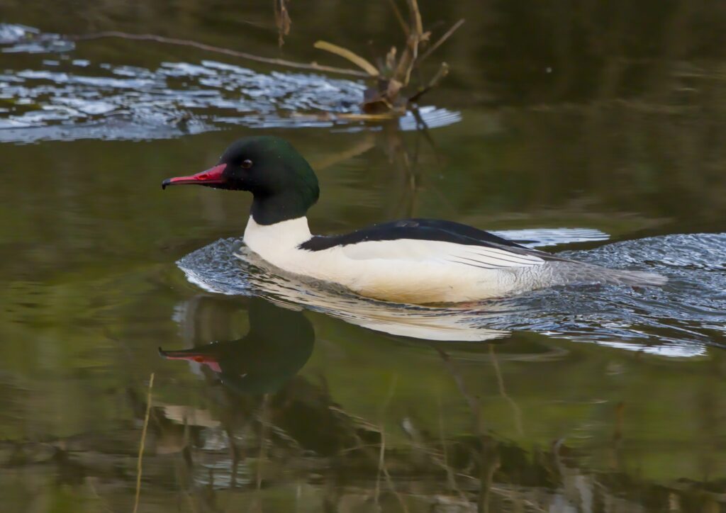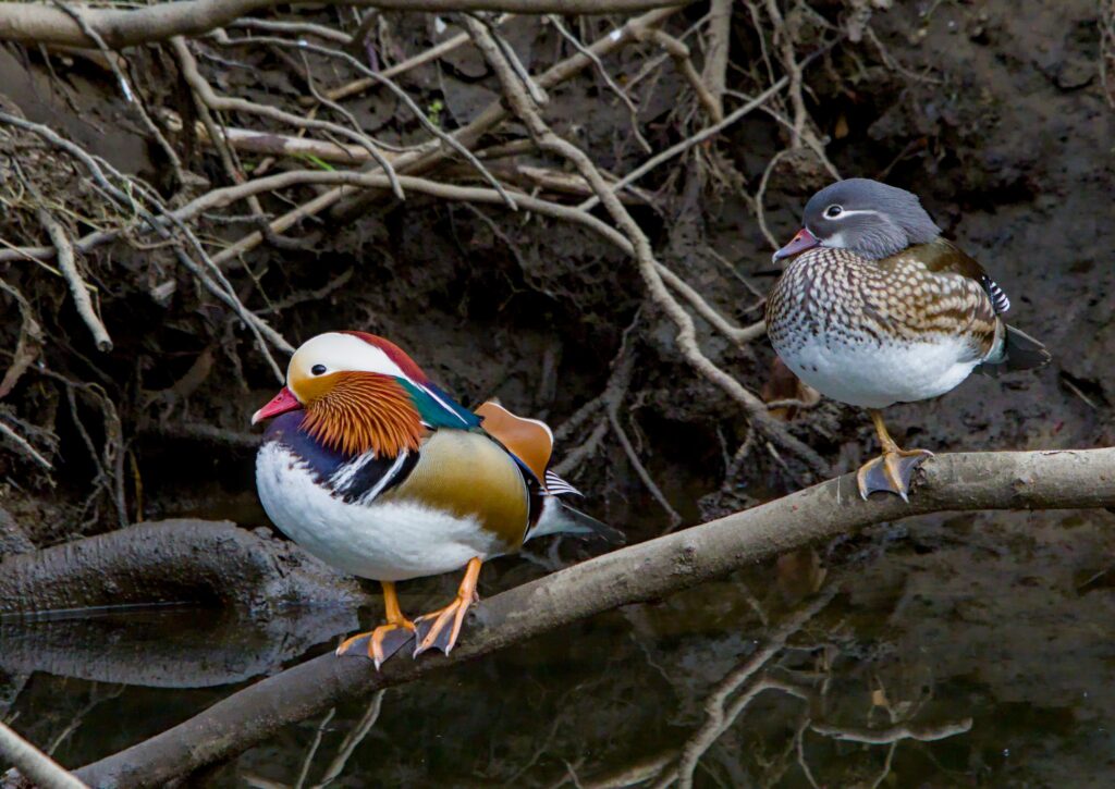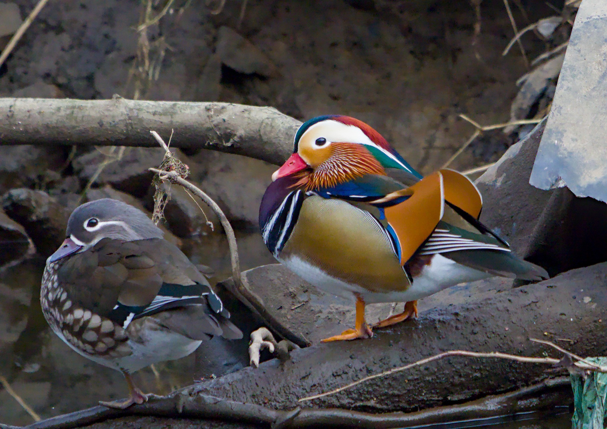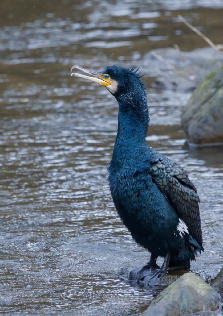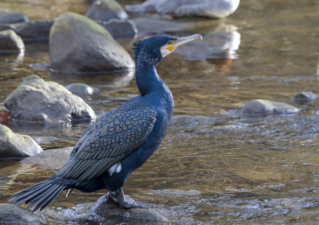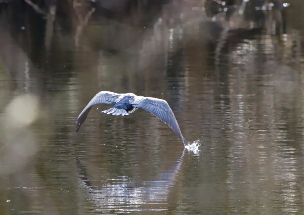 Two pairs of Mandarin Duck, with the males looking rather colourful, were quite close to the down river entrance to the reserve. As was a Cormorant, unfortunately I was behind the noticeboard and several trees were in the way when it decided to fly up river so I could only get photos of it flying away.