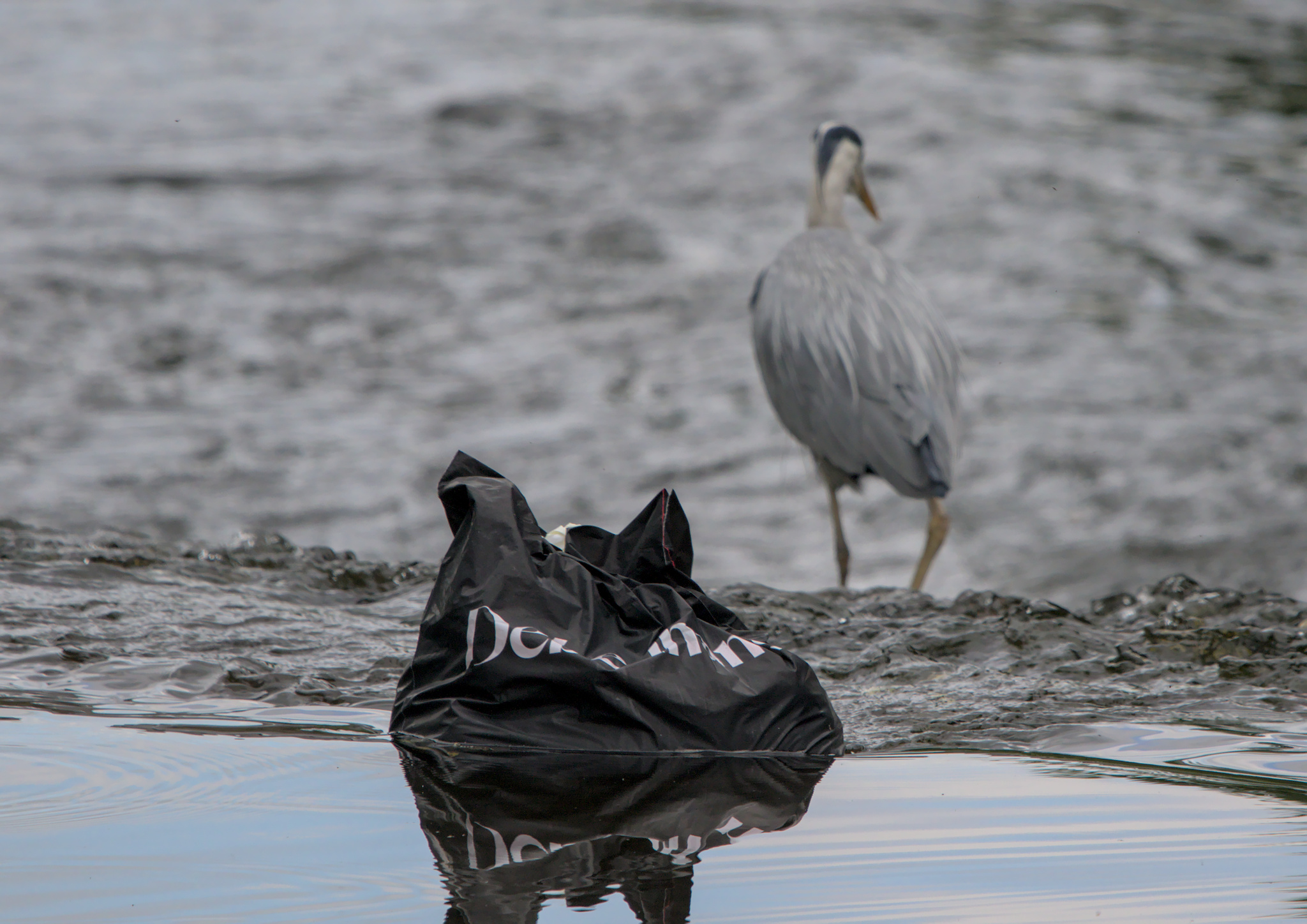 Some of the access to view the weir at Baildon Bridge has now been fenced off by the small businesses there. The only access is by the side of the bed shop. I heard a Peep, peep of a Kingfisher but didn’t see it but a Heron, Mallard and Black Headed Gull were on the weir. I couldn’t get a better view of the rubbish to see what name was on the bag.