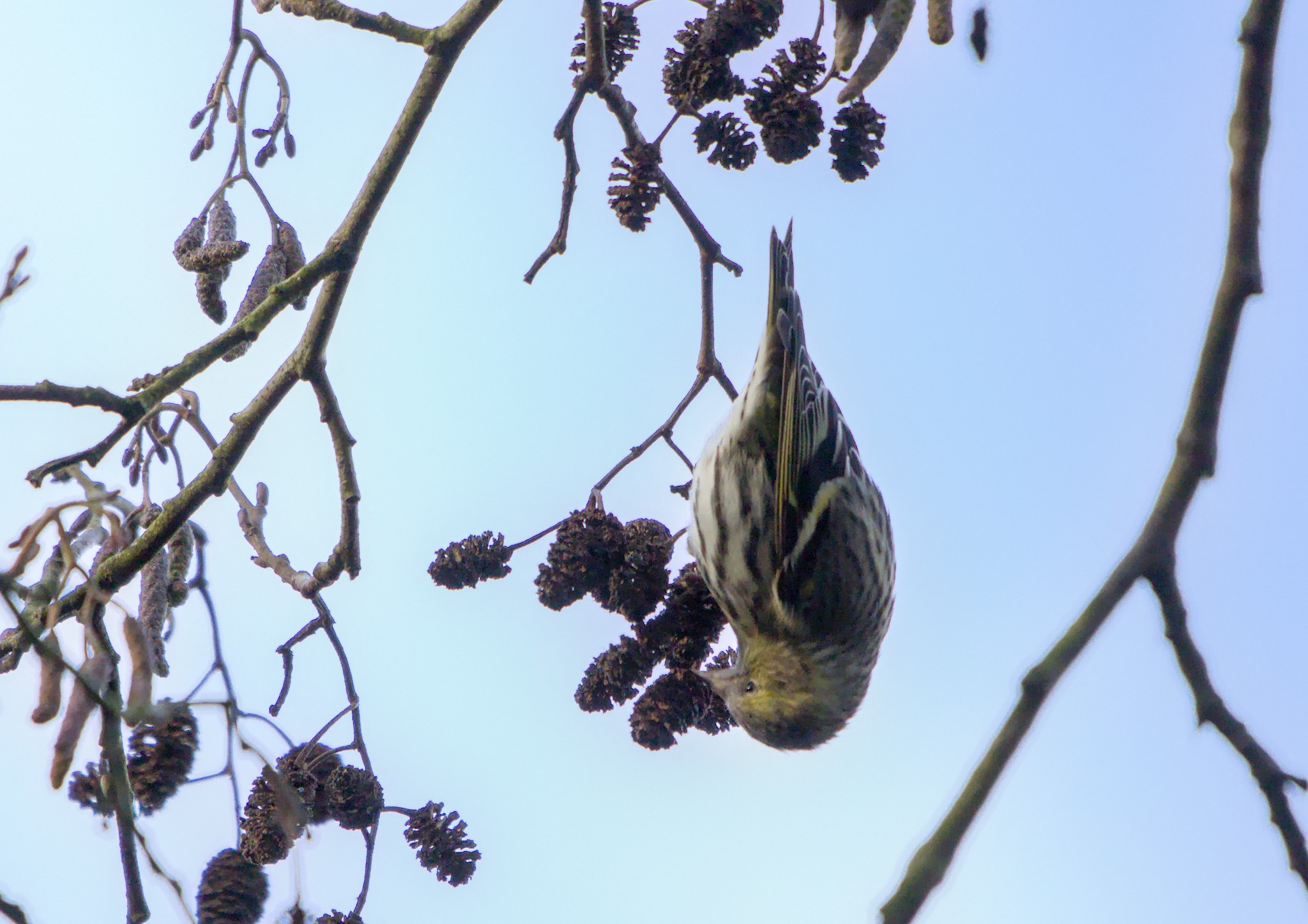 On one of my previous visits I was pretty sure that I saw some Siskin but did wonder if they could have been Goldfinches. When they are in the tree with the sky behind it can be difficult to see any colour or features. On this visit though I managed to get some photos and brighten them up enough so they weren’t just black silhouettes against the sky. Definitely Siskins.