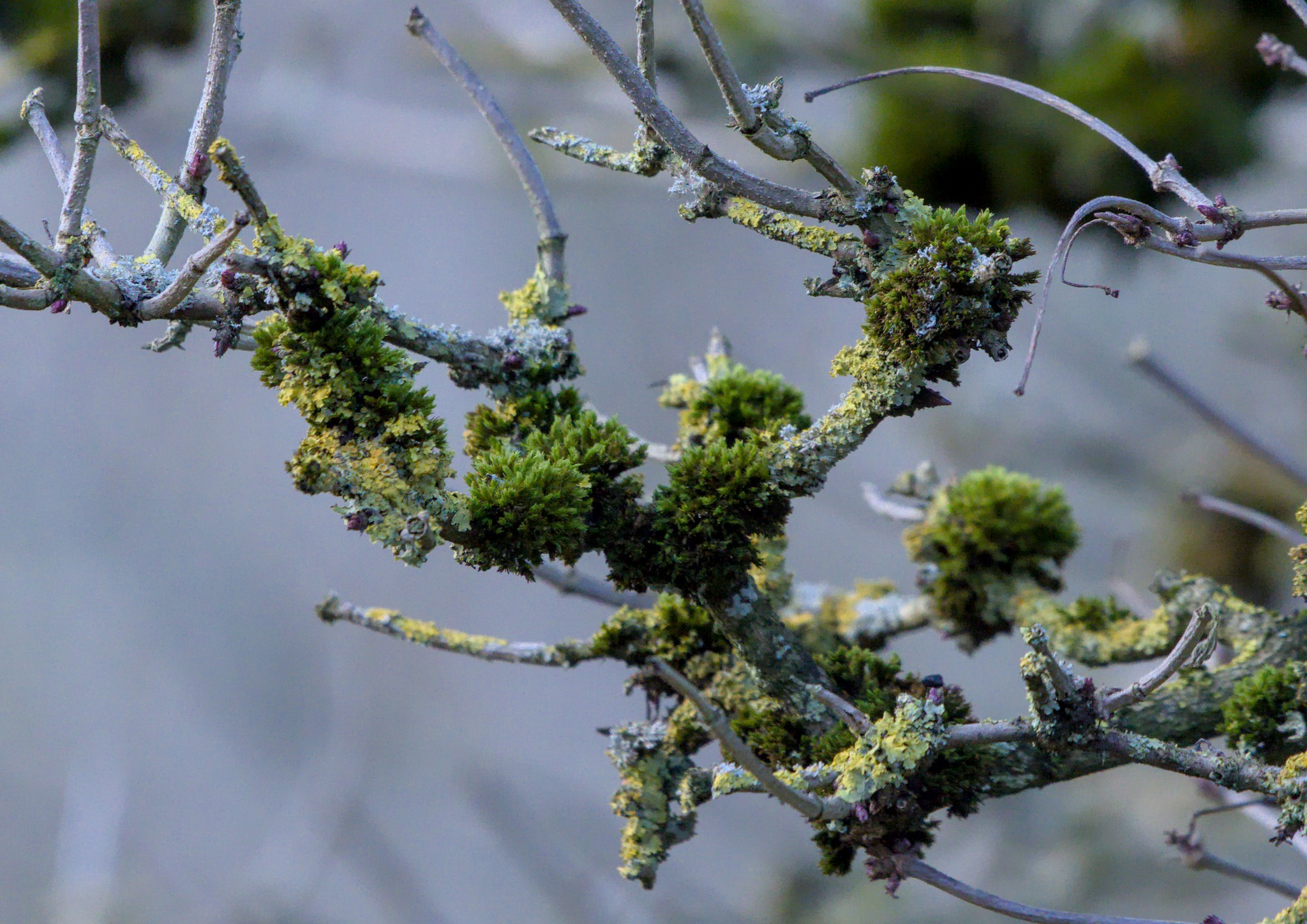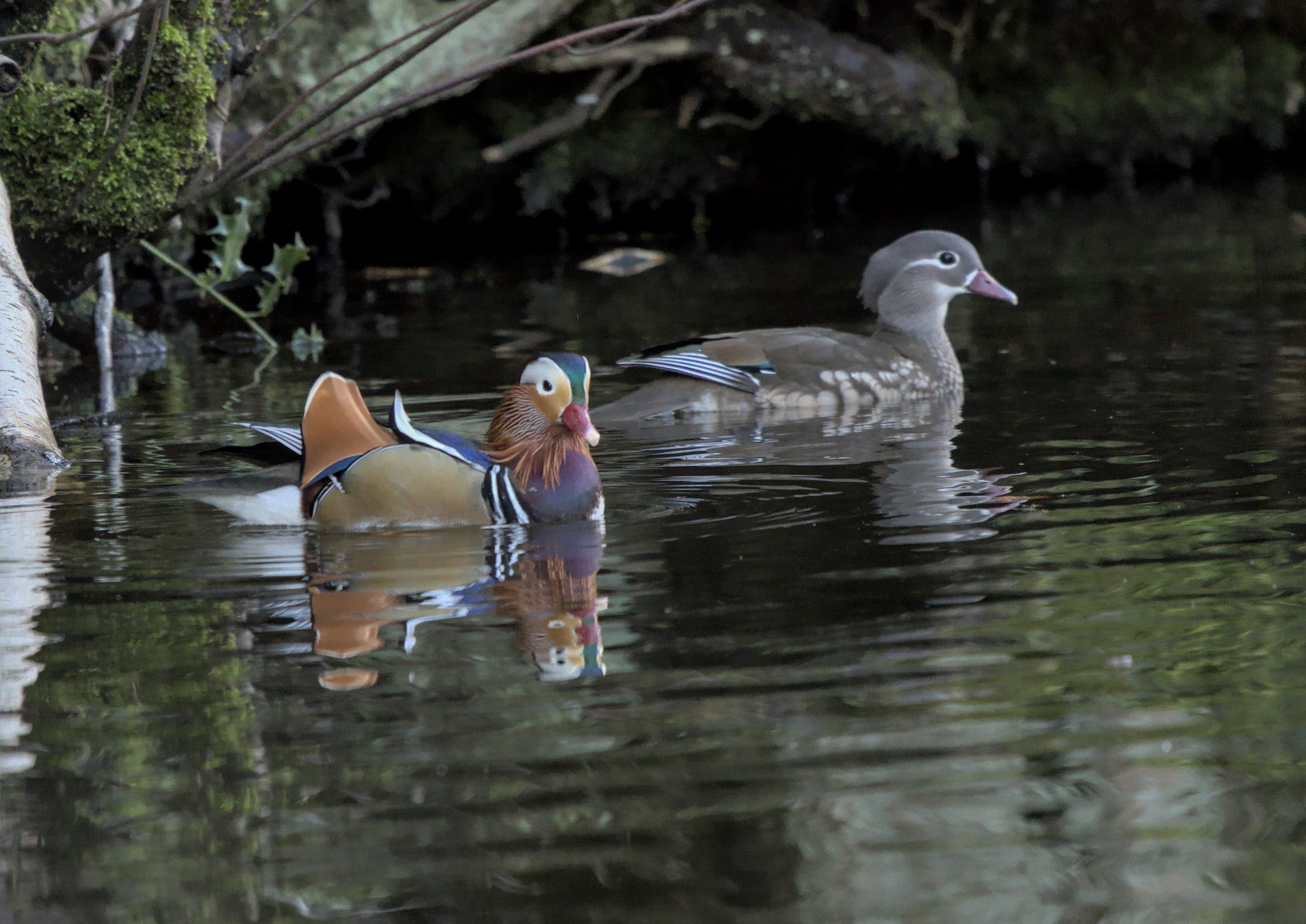 I also walked along the canal to Field Lock. Quite close to there I spotted several bushes and trees that were covered in Lichen. On the way back from the lock a pair of Mandarin Duck were paddling along with a group of Mallard. In the trees, down the slope between the canal and the river, I spotted several Jay flying between trees and managed to find one of them in the viewfinder.