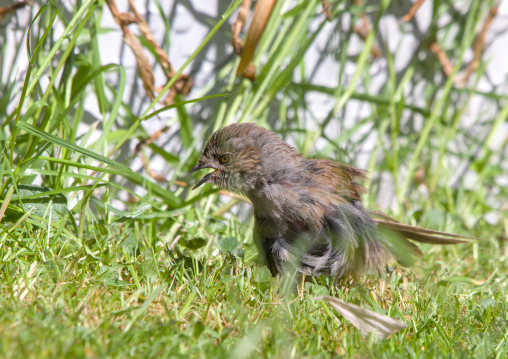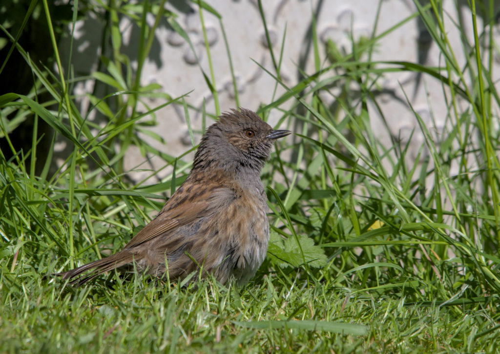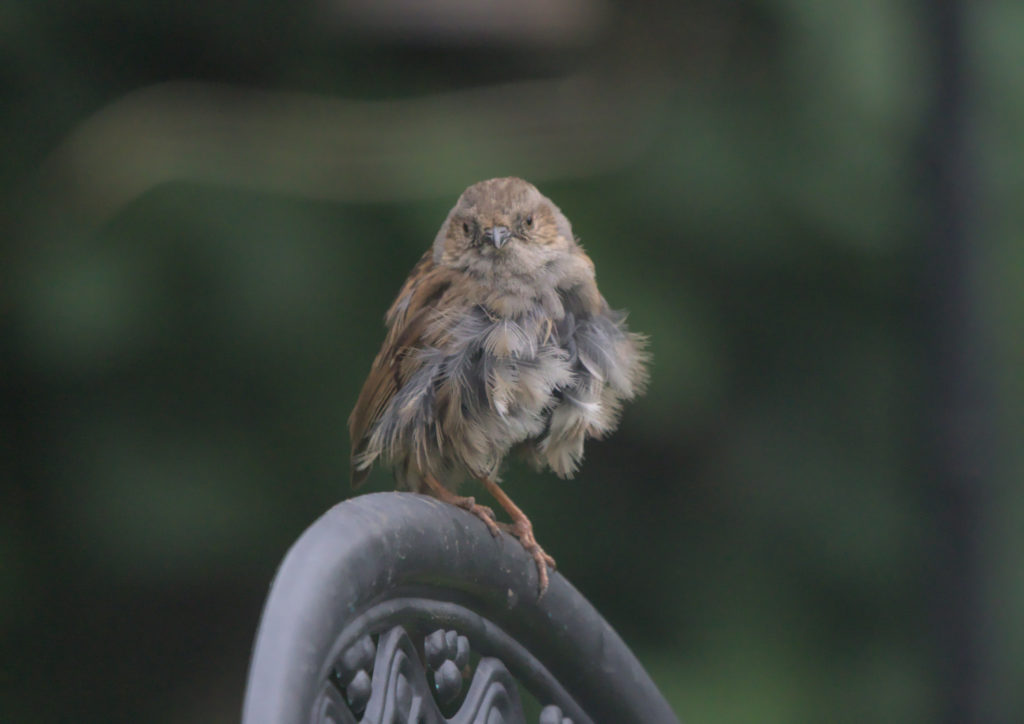 We often have Dunnocks in the garden and over the last week or two it has looked as though we have had at least one pair. These photos show that either one of them has been dragged through the bushes by a cat or it is a newly fledged bird.