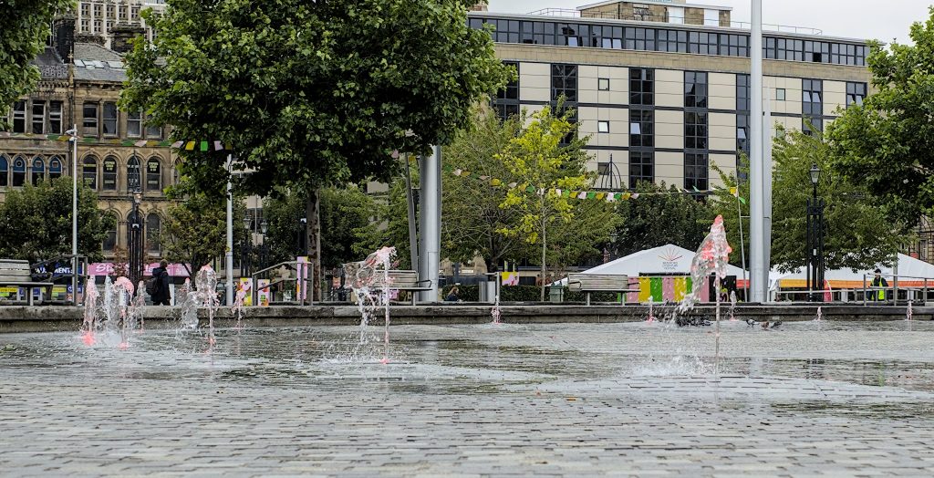 Bingley Camera Club members have the opportunity to volunteer for the 5 Go event. Members are assigned a group and decide on where and when to go with their cameras during the Summer recess. I was in group 7 along with 5 others and we decided to go into the centre of Bradford on July 5th. The centre of Bradford has recently had a major overhaul so it was a good opportunity to go and have a look at it. We decided to meet up at Starbucks in Centenary Square and the header image is from soon after we set off, looking for the photo. In October each group will do a presentation of their photos to the club.