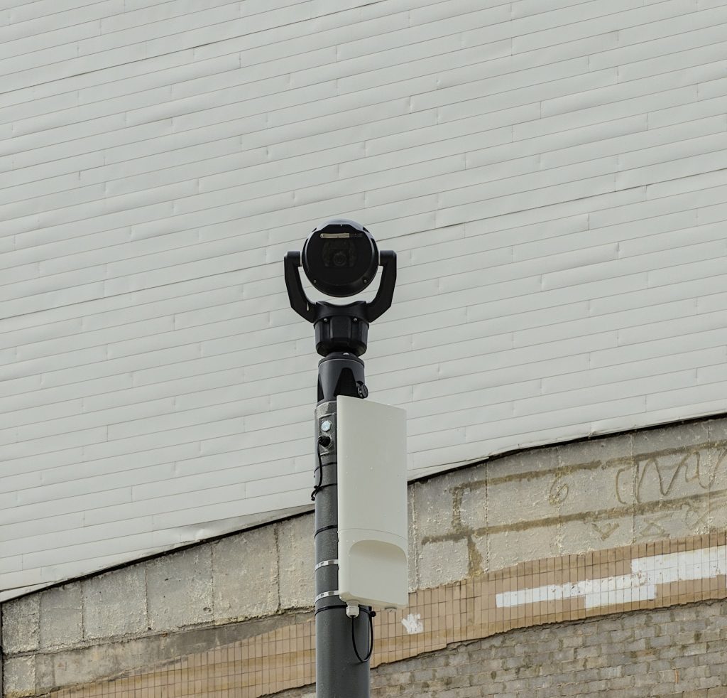 This is direct head-on, lens to lens, with my camera and a CCTV camera next to City Exchange. City Exchange is a residential development at 61 Hall Ings with studio and 1 bedroom apartments