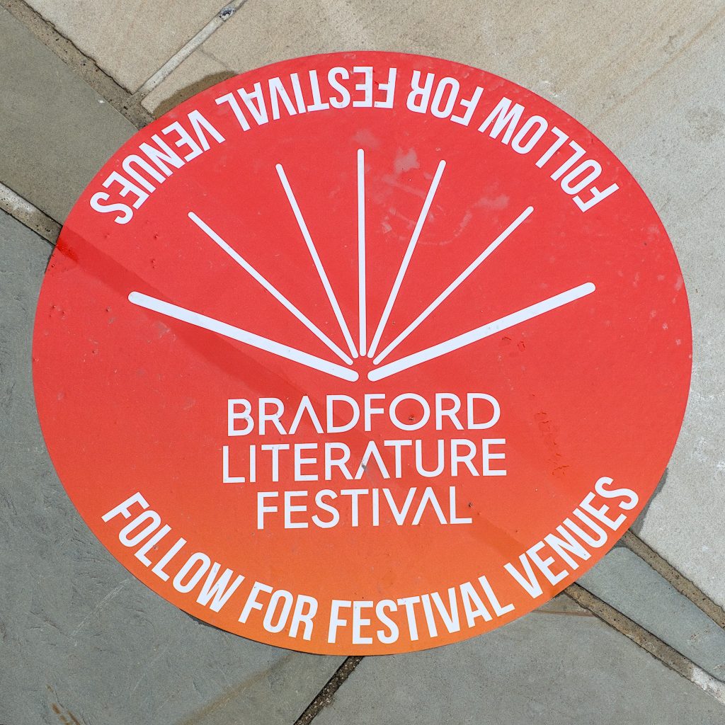The Bradford Literature Festival this year ran from 27 June to 6 July 2025, this being 5 July there are still signs stuck to the pavement. Next year it is 3 to 12 July.
