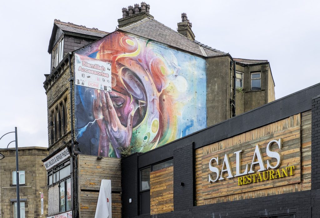 This is The Portal by NeSpoon. Commissioned by BD Walls, Bradford 2025, the Metropolitan District Council, National Lottery Heritage Fund and Morrisons in preparation for City of Culture.